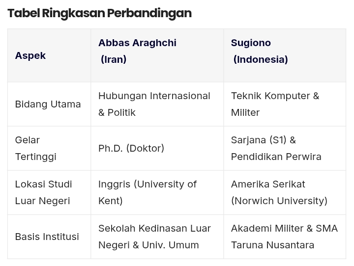 Abbas Araghchi dan Sugiono Adu Latar Belakang Pendidikan Menlu Iran vs Indonesia: Akademisi Luar Negeri Melawan Disiplin Militer Hingga Maret 2026, kursi Menteri Luar Negeri Iran ditempati oleh Abbas Araghchi, sementara Indonesia dipimpin oleh Sugiono. Meskipun keduanya saat ini merupakan nahkoda kebijakan luar negeri di negara masing-masing, latar belakang pendidikan mereka menunjukkan kontras yang menarik antara jalur diplomat karier-akademisi dan jalur politik-militer. Berikut adalah pembahasan perbandingan latar belakang pendidikan kedua tokoh tersebut. Info Belanja Cicilan Online Murah Motor HP Laptop TV Mesin Cuci Kompor Gas Springbed Dll 1. Abbas Araghchi (Menteri Luar Negeri Iran) Abbas Araghchi adalah potret diplomat yang dibentuk melalui jalur pendidikan formal yang sangat linier dalam bidang politik dan hubungan internasional (HI). Pendidikan Dasar Diplomasi: Ia menempuh gelar Sarjana (S1) di School of International Relations di Teheran, sebuah institusi pendidikan yang berada langsung di bawah naungan Kementerian Luar Negeri Iran. Penguatan Ilmu Politik: Araghchi melanjutkan pendidikan Magister (S2) dalam bidang Ilmu Politik di Islamic Azad University, Cabang Teheran Pusat. Gelar Doktor di Inggris: Sebagai pelengkap kepakarannya, ia meraih gelar Ph.D. dalam bidang Politik dan Hubungan Internasional dari University of Kent, Inggris. Karakteristik: Latar belakang pendidikannya mencerminkan penguasaan teori politik yang mendalam, yang mendukung perannya sebagai negosiasi ulung dalam isu-isu sensitif seperti perjanjian nuklir. Info Belanja Terlaris 1 di Shopee! Ini Dia Daftar Produknya 2. Sugiono (Menteri Luar Negeri Indonesia) Sugiono memiliki latar belakang yang unik bagi seorang Menteri Luar Negeri Indonesia, karena ia tidak berasal dari korps diplomat karier, melainkan dari pendidikan militer dan teknik. Pendidikan Menengah: Ia merupakan lulusan SMA Taruna Nusantara Magelang (angkatan TN 5), sekolah yang dikenal dengan disiplin semi-militer yang ketat. Sarjana Teknik di Amerika Serikat: Sugiono menempuh pendidikan tinggi di Norwich University, Amerika Serikat, dengan fokus pada program Computer Science (Teknik Komputer). Norwich University sendiri merupakan akademi militer swasta tertua di Amerika Serikat. Pendidikan Perwira: Sekembalinya ke Indonesia, ia melanjutkan ke Sekolah Perwira Prajurit Karier (SEPA PK) di Akademi Militer Magelang dan lulus sebagai perwira TNI AD pada tahun 2002. Karakteristik: Pendidikannya yang berbasis militer dan teknik di Amerika Serikat membentuk profilnya sebagai pemimpin yang disiplin dan strategis, selaras dengan visinya memperkuat “Diplomasi Ketahanan” Indonesia. Baca Juga Hidup Tenang dan Bahagia dengan Stoikisme Perbedaan ini menunjukkan dua gaya kepemimpinan diplomasi yang berbeda: Araghchi mewakili gaya “Diplomat-Akademisi” yang mengandalkan keahlian teori politik dan negosiasi teknis, sementara Sugiono mewakili gaya “Praktisi-Strategis” yang mengedepankan kedisplinan militer dan pendekatan pragmatis dalam menjalankan misi luar negeri di bawah pemerintahan Presiden Prabowo Subianto. Navigasi pos Inilah 4 Motor Listrik dari Indomobil, Harga Mulai Rp15 Juta 4 Prajurit TNI Tersangka Penyiraman Air Keras Aktivis KontraS Diamankan