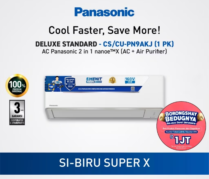 Cicilan AC Panasonic Rp429.000 Online di Sini Mau beli AC tapi harganya mahal? Cicil saja dengan SPayLater Shopee. Supaya bisa nyicil, kamu harus daftar dulu SPayLater di sini Rp429.000 per bulan – Panasonic AC 0.5 PK CS/CU-YN5AKJ AC Standard Non Inverter [0.5 PK] Rp3.989.000 Cicil di sini Info Belanja Cicilan Online Murah Motor HP Laptop TV Mesin Cuci Kompor Gas Kasur Springbed Dll Rp576.000 per bulan – Panasonic AC 1 PK CS/CU-PN9AKJ AC & Purifier – Low Voltage + Nanoe-X [1 PK] Rp5.109.000 Beli di sini Rp646.000 per bulan – Panasonic AC 1.5 PK CS/CU-YN12AKJ AC Standard Non Inverter [1.5 PK] Rp5.729.000 Cicil di sini Rp839.000 per bulan – Panasonic AC 2 PK CS/CU-YN18AKJ AC Standard Non Inverter [2 PK] Rp7.439.000 Cicil di sini Rp1.154.000 per bulan – Panasonic AC 2.5 PK CS/CU-YN24AKJ AC Standard Non Inverter [2.5 PK] Rp10.229.000 Cicil di sini Yuk bagikan infonya di sosmed sahabat… Terima kasih Navigasi pos 10 Produk Sedang Trending di Shopee Minggu Ini Buku Paten Sekolah Kedinasan 2026 – Kuliah Gratis dan Lulus Auto Jadi PNS