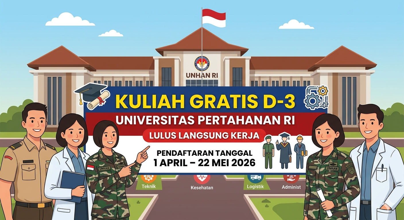 Terlaris 1 di Shopee! Kuliah Gratis D-3 Universitas Pertahanan RI, Lulus Langsung Kerja – Pendaftaran Tanggal 1 April – 22 Mei 2026 PERSYARATAN VOKASI (D3) PERSYARATAN UMUM Warga negara Indonesia, laki-laki atau perempuan; Sanggup memenuhi segala peraturan dan ketentuan yang ditetapkan oleh Universitas Pertahanan RI; Sehat jasmani dan rohani serta tidak buta warna; Lulusan tahun 2025 dan 2026 Sekolah Menengah Atas/Sederajat Jurusan IPA, SMK/Sederajat sesuai jurusan prodi yang dioperasionalkan; Tidak pernah tinggal kelas selama di Sekolah Menengah Atas/Sederajat; Nilai rapor SMA/Sederajat semester I s.d V rata-rata 80, dan untuk mata pelajaran IPA (Fisika, Matematika, Biologi, dan Kimia) minimal 85, untuk nilai rapor SMK/Sederajat semester I s.d V mata pelajaran sesuai jurusan prodi yang dioperasionalkan rata-rata 80 sesuai struktur kurikulum SMK pusat keunggulan; Nilai Tes Intelligence Quotient (IQ) minimal 110; Usia maksimal 20 tahun saat pembukaan pendidikan pada tanggal 1 September 2026; Memiliki tinggi badan minimal laki-laki 163 cm dan perempuan 157 cm serta berat badan proposional dengan menyertakan surat keterangan dari RS Pemerintah; Mampu mengoperasikan komputer (aplikasi Internet dan Office); Bersedia ditempatkan dimana saja sebagai prajurit TNI & ASN Kemhan; Persetujuan orang tua/wali, bersedia tinggal di asrama dan sanggup mematuhi peraturan yang berlaku; Penyetaraan Ijazah dan nilai dari Dirjen Dikti Kemendikbud bagi lulusan sekolah menengah atas/sederajat dari luar negeri atau lulusan berlatar belakang International School di dalam negeri; Bersedia menandatangani surat pernyataan; Bersedia untuk tidak menikah dan tidak hamil selama mengikuti pendidikan; Tidak sedang menerima beasiswa lain dan tidak akan menerima beasiswa lain selama mengikuti pendidikan; Sebagai kader intelektual bela negara dan komponen cadangan; Belum pernah menikah baik secara hukum negara, hukum agama dan hukum adat serta belum memiliki anak secara biologis; Memiliki jiwa kejuangan yang tinggi menjadi kader bela negara dan bersungguh-sungguh untuk mendaftar menjadi calon Kadet Mahasiswa Unhan RI, dan apabila mengundurkan diri, setelah dinyatakan diterima sebagai Kadet Mahasiswa Unhan RI yang telah melaksanakan Pembukaan Pendidikan diwajibkan mengembalikan biaya seleksi Penerimaan Mahasiswa Baru (PMB) dan biaya operasional pendidikan yang telah dikeluarkan kepada negara. Baca Juga Buku Tes Terbaru 2026 : Tes CPNS, TNI POLRI, BUMN, Sekolah Kedinasan, UTBK SNBT PERSYARATAN KHUSUS A. SMA/sederajat Program Studi Budi Daya Pertanian Lahan Kering Nilai rapor semester V untuk Biologi dan Kimia minimal 85 (Nilai Pengetahuan); Program Studi Budi Daya Tanaman Perkebunan Nilai rapor semester V untuk Biologi dan Kimia minimal 85 (Nilai Pengetahuan); Program Studi Budi Daya Ternak Nilai rapor semester V untuk Matematika, Kimia dan Biologi minimal 85 (Nilai Pengetahuan); Program Studi Perikanan Tangkap Nilai rapor semester V untuk Matematika dan Fisika minimal 85 (Nilai Pengetahuan); Program Pengolahan Hasil Laut/Perikanan Nilai rapor untuk semester V untuk Matematika dan Fisika minimal 85 (Nilai Pengetahuan); Program Studi Permesinan Kapal Nilai rapor semester V untuk Matematika dan Fisika minimal 85 (Nilai Pengetahuan); Program Studi Budi Daya Ikan Nilai rapor semester V untuk Biologi dan Matematika minimal 85 (Nilai Pengetahuan). B. SMK/sederajat Nilai rapor untuk mata pelajaran yang sesuai dengan program D-3, nilai kejuruan dan nilai PKL 85. PROGRAM STUDI VOKASI (D3) Prodi Budi Daya Pertanian Lahan Kering Prodi Budi Daya Tanaman Perkebunan Prodi Budi Daya Ternak Prodi Perikanan Tangkap Prodi Pengolahan Hasil Laut/Perikanan Prodi Permesinan Kapal Prodi Budi Daya Ikan JADWAL PENERIMAAN MAHASISWA BARU Pendaftaran Online tanggal 1 April s.d 22 Mei 2026 Sumber : penerimaan.idu.ac.id Navigasi pos Sekolah Kedinasan dengan Pendaftar Paling Sedikit
