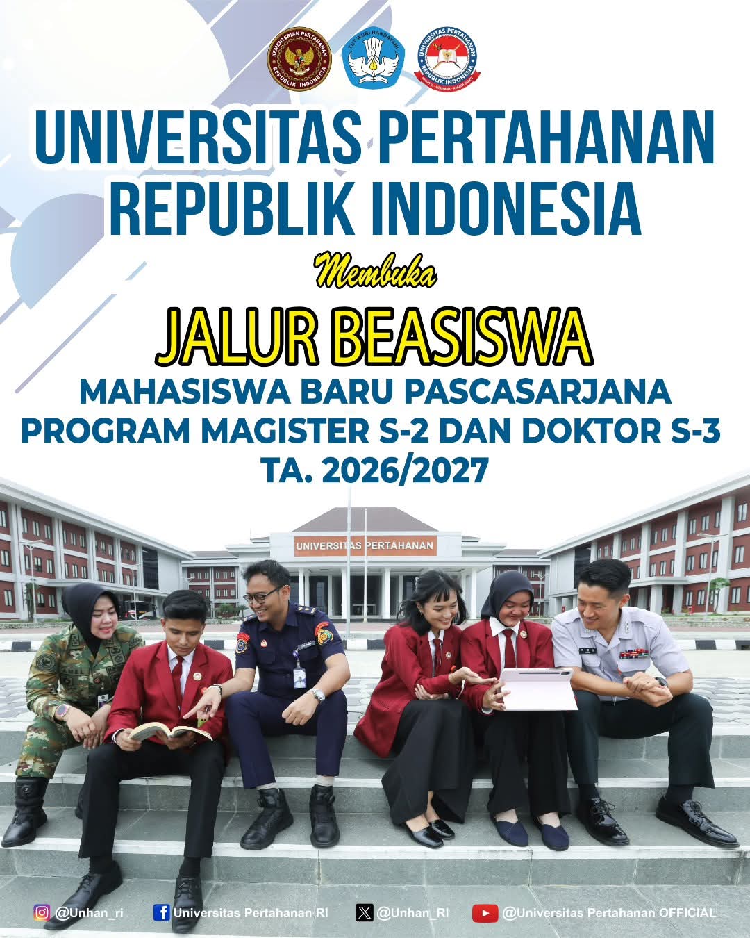 Terlaris 1 di Shopee! Beasiswa S2 dan S3 Universitas Pertahanan RI Pendaftaran Tanggal 1 April – 5 Juni 2026 Universitas Pertahanan Republik Indonesia membuka Penerimaan Mahasiswa Baru Pascasarjana Jalur Beasiswa TA 2026/2027 untuk Program Magister (S-2) dan Doktor (S-3). Terbuka bagi TNI, Polri, PNS, masyarakat umum, serta mahasiswa internasional yang ingin mengembangkan ilmu dan kontribusi strategis bagi bangsa. 🗓 Pendaftaran: 1 April – 5 Juni 2026 🌐 Daftar sekarang: www.penerimaan.idu.ac.id Info Belanja Terlaris 1 di Shopee! Ini Dia Daftar Produknya Jadilah bagian dari generasi intelektual pertahanan Indonesia. Praditya • Wiratama • Nagara Bhakti #unhanri #beasiswa #defensestudies #indonesiadefenseuniversity Navigasi pos Mau Kerja ke Luar Negeri? Ini Langkahnya Biar Aman dan Jelas Beasiswa D3 Universitas Pertahanan RI Pendaftaran 1 April – 22 Mei 2026