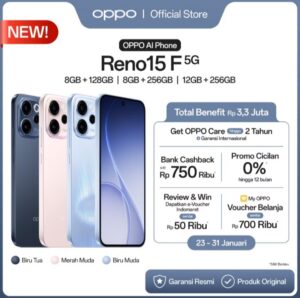 Cicilan Online HP OPPO Reno15 F 5G 8+128/256GB & 12+256GB Rp620.000