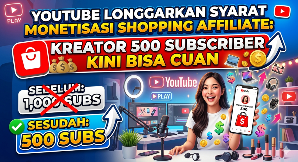 YouTube Longgarkan Syarat Monetisasi Shopping Affiliate: Kreator 500 Subscriber Kini Bisa Cuan