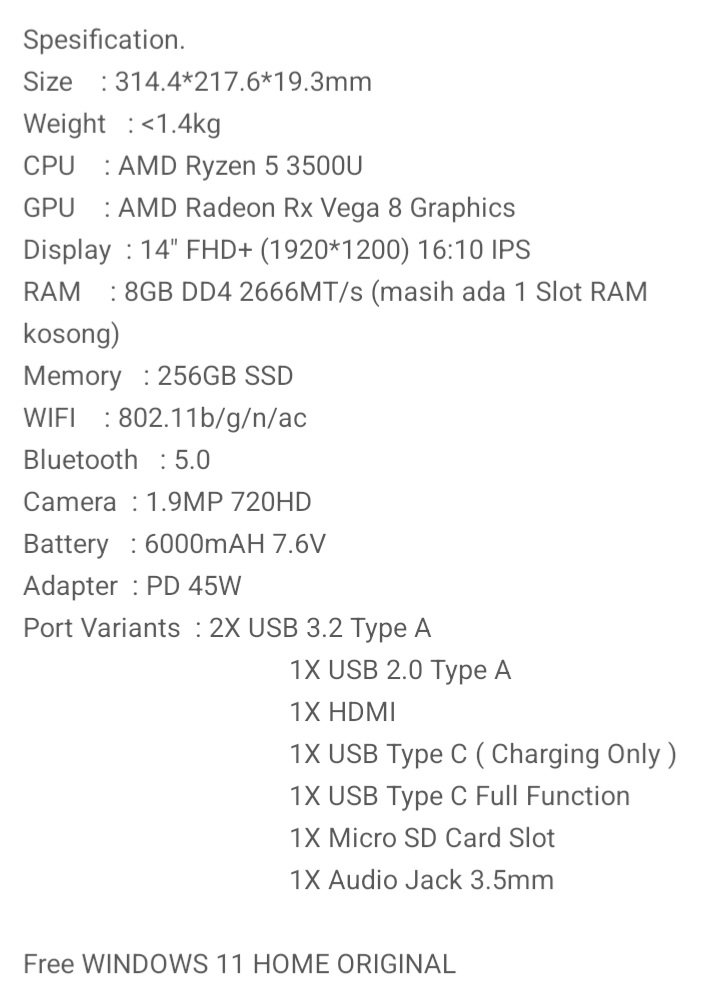 BELI DI TIKTOK DI SHOPEE Rp664.000 Cicilan Laptop ADVAN WorkMate Intel i3 8GB/256GB Mau beli laptop tapi mahal? Cicil saja dengan SPayLater Shopee. Supaya bisa nyicil laptopnya, kamu bisa daftar dulu di sini BEST SELLER ADVAN Laptop WorkMate AMD Ryzen 5 3500U Intel i3-1215U 14 Inch FHD+ 16:10 IPS 8GB/256GB Upgradable WIFI 5 Garansi Resmi 1 Tahun Info Belanja Cicilan Online Murah Motor HP Laptop TV Mesin Cuci Kompor Gas Springbed Dll Navigasi pos Rp29.388 Terlaris Online Sudah Terjual 341rb Pcs Lebih Paket 10 Buku Tulis 38 Lembar PENDEK