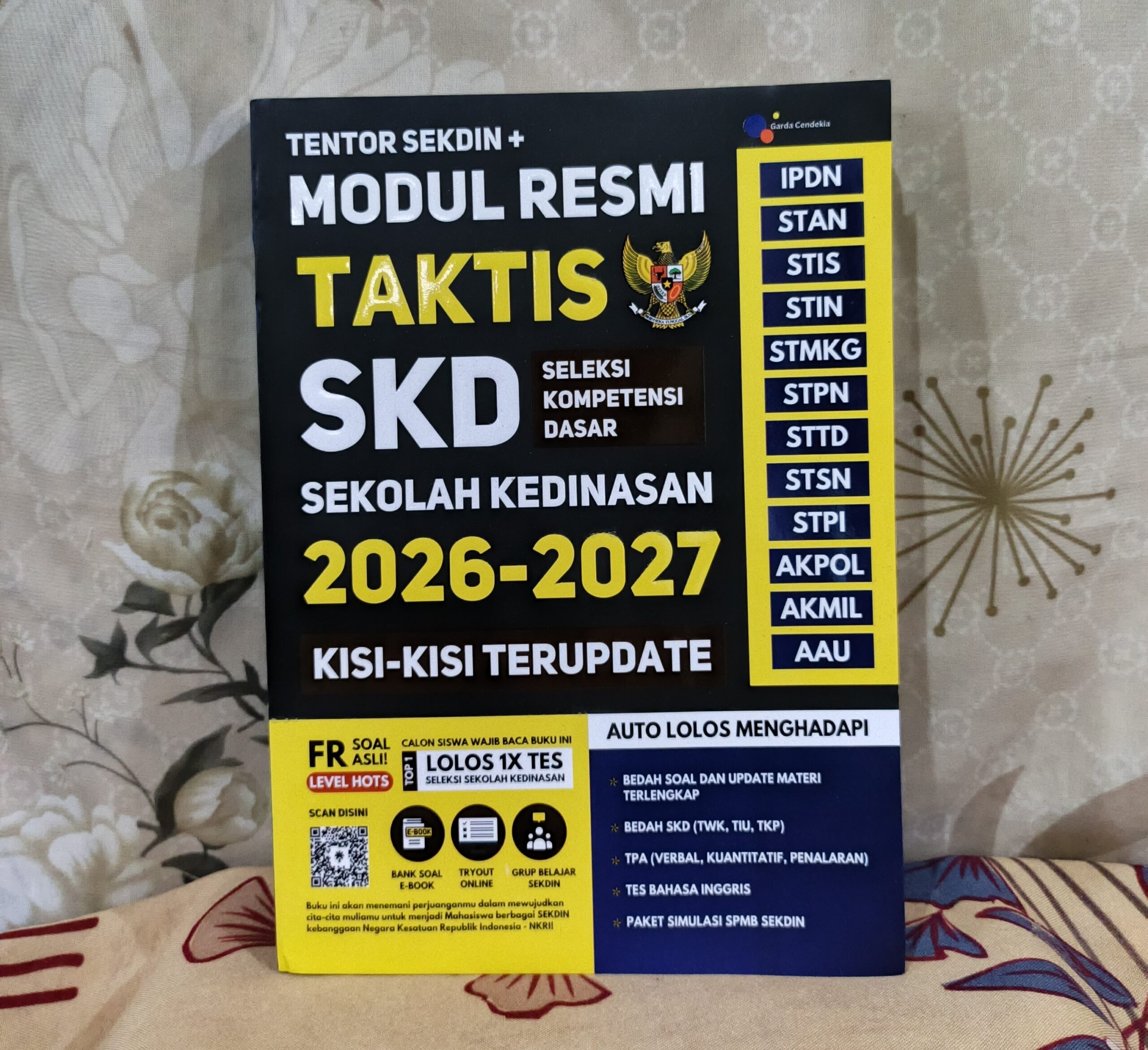 Buku “Modul Resmi Taktis SKD Sekolah Kedinasan 2026-2027″ diterbitkan oleh Garda Cendekia merupakan panduan komprehensif bagi calon mahasiswa Sekolah Kedinasan (SEKDIN) untuk menghadapi Seleksi Kompetensi Dasar (SKD). Buku setebal 431 halaman ini dirancang sesuai dengan kisi-kisi terbaru dari BKN dan Menpan-RB.