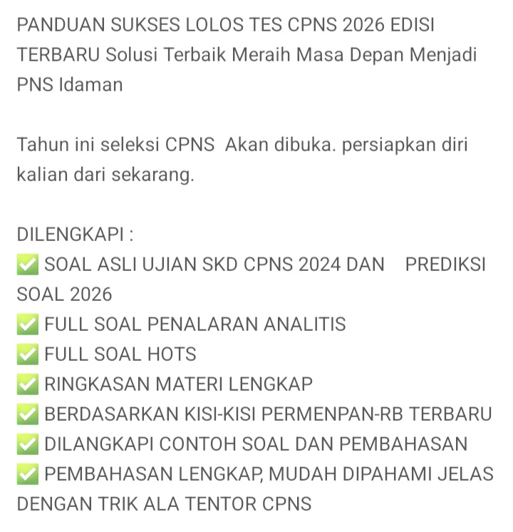 BELI DI TIKTOK DI SHOPEE Buku Panduan Sukses Lolos Tes CPNS 2026 *** Navigasi pos Realme 16 Pro+ 12/512GB 200MP Camera Seleksi CPNS 2026: Jadwal, Formasi, Syarat, Alur dan Dokumennya
