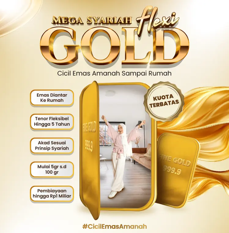 Antam BSI Gold Galeri 24 Emasku Lotus Archi Grafik Cicilan Emas di Bank Mega Syariah Bisa 1 Miliar Bank Mega Syariah Flexi Gold adalah solusi pembiayaan kepemilikan emas yang dirancang untuk membantu nasabah berinvestasi secara aman, mudah, dan sesuai prinsip syariah. Produk ini memungkinkan Anda memiliki emas logam mulia 24 karat melalui sistem cicilan tetap yang ringan. Fitur Utama Flexi Gold Emas Logam Mulia 24 Karat: Pembiayaan khusus untuk kepemilikan emas batangan murni yang bersertifikat. Cicilan Tetap & Ringan: Memberikan kepastian angsuran setiap bulannya tanpa khawatir akan fluktuasi harga emas yang terus naik. Pilihan Tenor & Gramasi: Tersedia berbagai pilihan jangka waktu pembiayaan dan berat emas yang dapat disesuaikan dengan kemampuan finansial nasabah. Layanan Pengiriman ke Rumah: Salah satu keunggulan utamanya adalah kemudahan pengiriman emas langsung ke alamat nasabah setelah proses administrasi selesai. Info Belanja Cicilan Online Murah Motor HP Laptop TV Mesin Cuci Kompor Gas Springbed Dll Keuntungan Berinvestasi melalui Flexi Gold Amanah & Terjamin: Dikelola oleh Bank Mega Syariah yang berpengalaman dengan pengawasan sesuai aturan perbankan syariah di Indonesia. Perlindungan Aset: Investasi emas dikenal sebagai instrumen yang tahan terhadap inflasi (safe haven). Proses Mudah: Nasabah dapat mengajukan pembiayaan di kantor cabang pilihan atau melalui informasi di media sosial resmi Bank Mega Syariah. Syarat dan Pengajuan Secara umum, persyaratan untuk mengajukan pembiayaan di Bank Mega Syariah meliputi dokumen identitas seperti KTP dan pendukung lainnya sesuai kebijakan bank. Produk ini tersedia dalam kuota terbatas di beberapa cabang tertentu, sehingga disarankan untuk mengecek ketersediaannya terlebih dahulu. Navigasi pos Cicil Emas di Bank Muamalat Bisa 500 Gram Selama 10 Tahun Cicil Emas di Pegadaian Saja