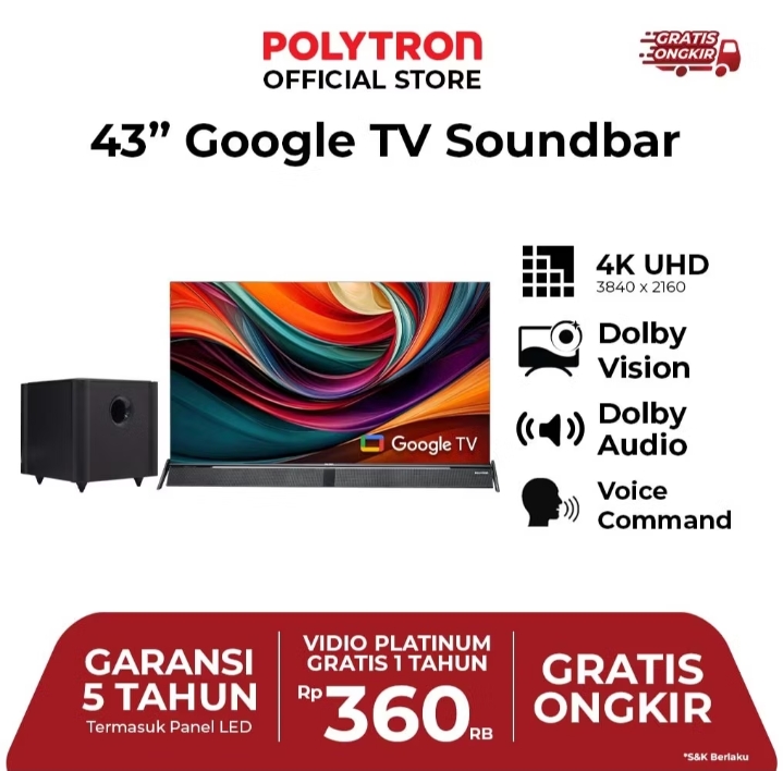 Rp per bulan – POLYTRON 4K UHD Smart Google TV 43 Inch PLD 43BUG5058 Rp4.049.000.