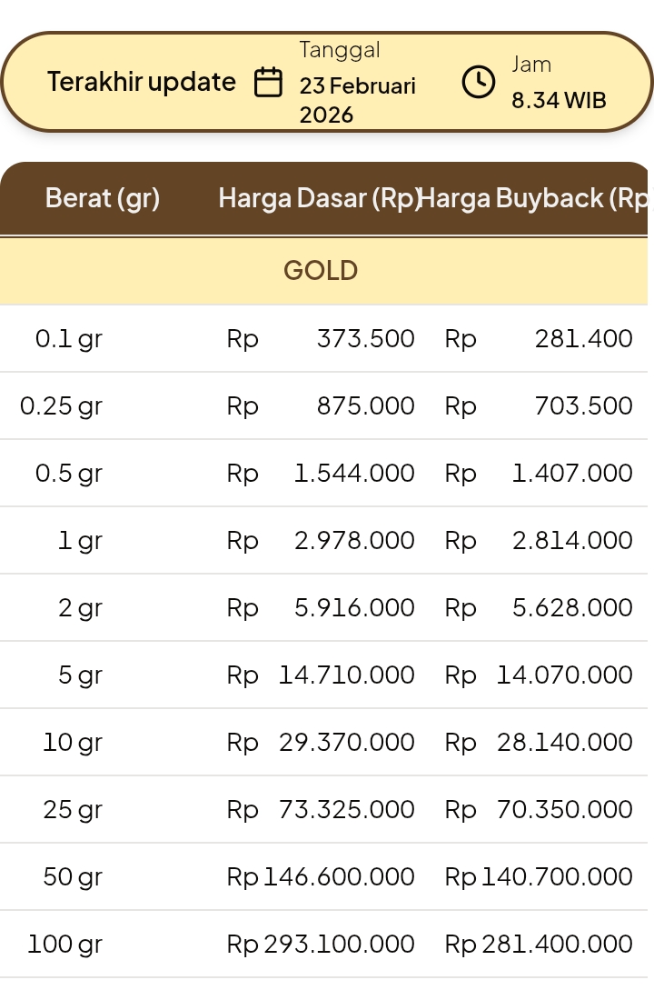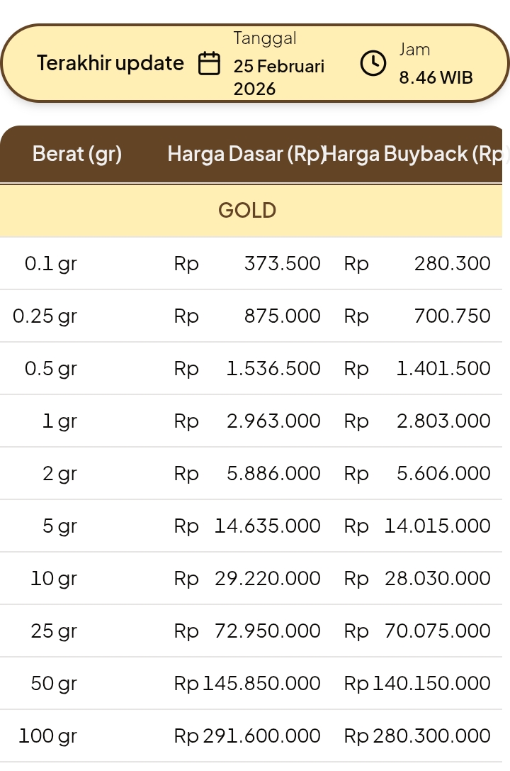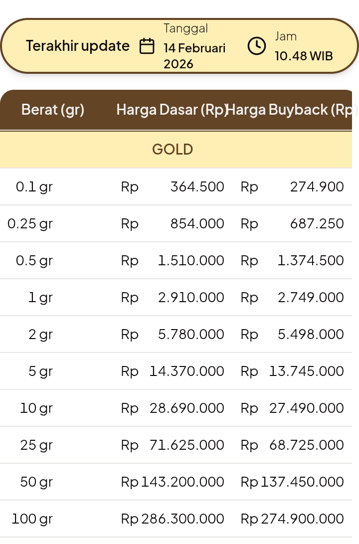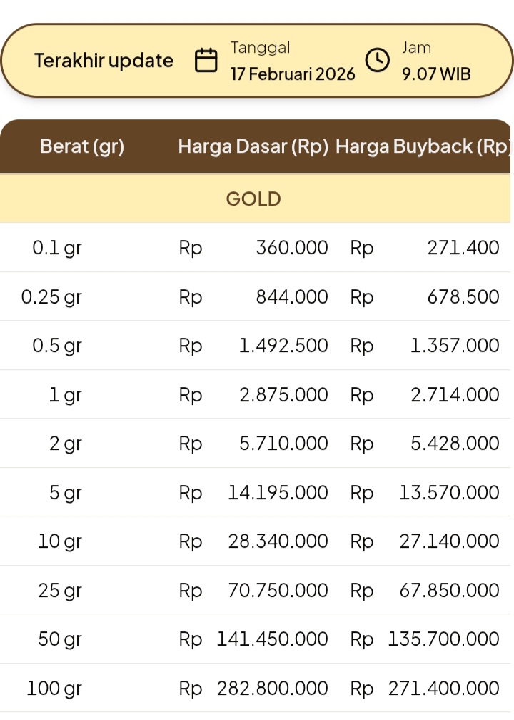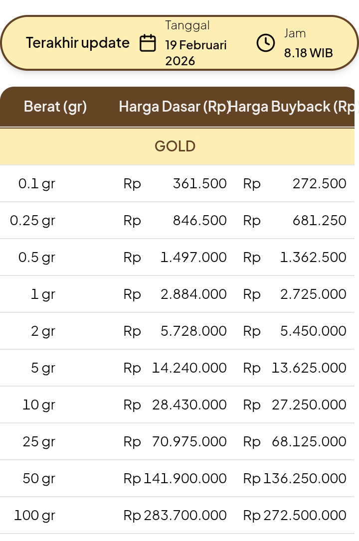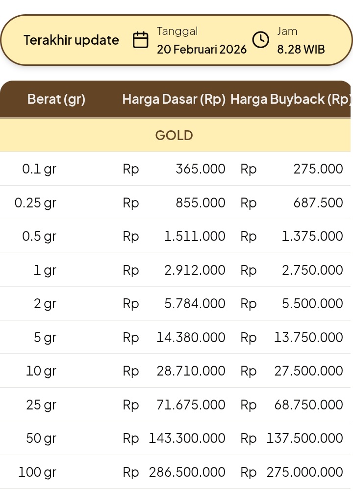 Emas Dunia Antam BSI Gold Galeri 24 Emasku Lotus Archi Grafik Cicil Harga EMASKU Hartadinata Hari Ini EMASKU adalah produk emas batangan premium (Fine Gold) dengan kadar 99,99% yang diproduksi oleh PT Hartadinata Abadi Tbk. EMASKU hari ini harganya berapa? Harganya ada di bawah ya. Beli EMASKU di sini Info Belanja Cicilan Online Murah Motor HP Laptop TV Mesin Cuci Kompor Gas Springbed Dll Harga EMASKU Tanggal 26 Februari 2026 Harga EMASKU Tanggal 25 Februari 2026 Harga EMASKU Tanggal 24 Februari 2026 Harga EMASKU Tanggal 23 Februari 2026 Harga EMASKU Tanggal 21 Februari 2026 Harga EMASKU Tanggal 20 Februari 2026 Harga EMASKU Tanggal 19 Februari 2026 hrtagold Navigasi pos Cicil Emas di Mana? Ada di 5 Bank Ini Harga Emas Galeri 24 Hari Ini