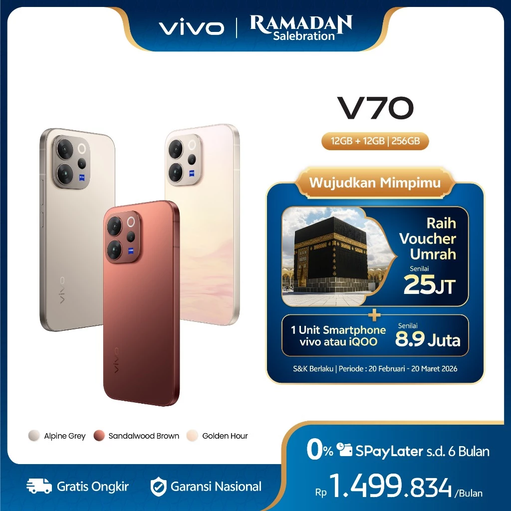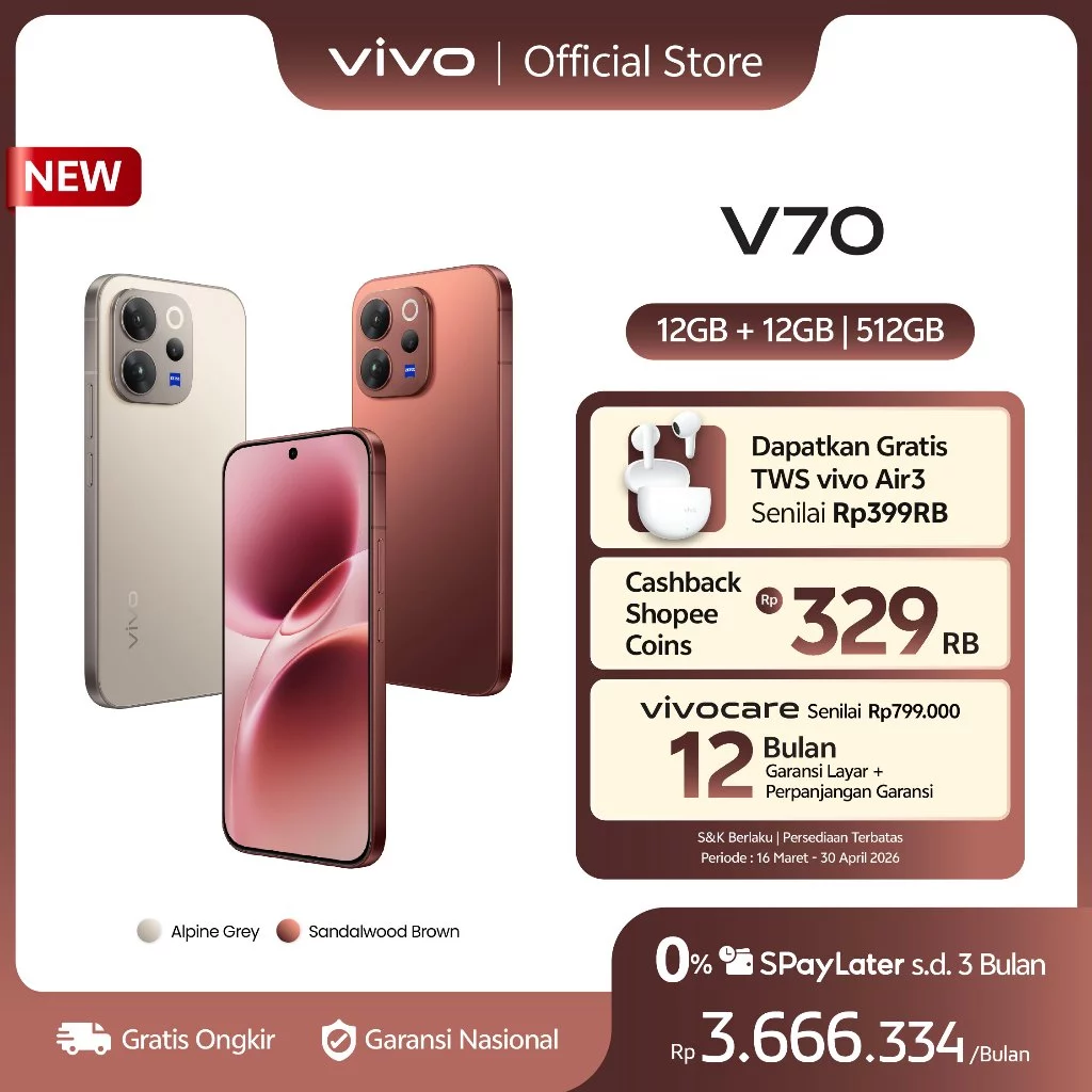 Terlaris 1 di Shopee! 12 HP Baru Maret 2026, Harga Mulai Rp 1 Jutaan Maret 2026, sejumlah produsen smartphone menghadirkan berbagai ponsel baru yang menarik perhatian. Mulai dari kelas menengah hingga flagship premium, deretan perangkat ini hadir dengan peningkatan spesifikasi, desain yang lebih modern, serta fitur kamera dan performa yang semakin mumpuni untuk menunjang aktivitas sehari-hari. Kehadirannya tentu menjadi pilihan menarik bagi pengguna yang ingin mengganti ponsel lama atau mencari perangkat baru untuk kebutuhan komunikasi, hiburan, hingga fotografi. Info Belanja Cicilan Online Murah Motor HP Laptop TV Mesin Cuci Kompor Gas Springbed Dll Beberapa model yang mencuri perhatian di antaranya seri Realme 16, yaitu Realme 16, Realme 16 Pro, dan Realme 16 Pro Plus, serta Realme Note 80 yang menyasar segmen lebih terjangkau. Dari kubu lain, ada Vivo V70 dan Vivo V70 FE, Oppo A6s, hingga ponsel premium seperti Huawei Mate X7, Leica LeitzPhone, Xiaomi 17, Xiaomi 17 Ultra, dan Tecno Camon 50 Pro 5G. Berikut daftar 12 HP baru yang rilis pada Maret 2026 dan bisa menjadi pilihan menarik untuk menemani momen liburan. 1. Realme 16 BELI DI TIKTOK Realme 16 reguler dibekali kamera utama 200 MP (f/1.9) dengan OIS yang memakai sensor Samsung HP5 (1/1.56 inci) dan didukung teknologi LumaColor Image untuk menghasilkan foto portrait lebih tajam dan natural. Berbeda dari varian Pro Plus, model ini tidak memiliki kamera telefoto dan hanya dilengkapi kamera ultrawide, serta kamera depan 50 MP. Ponsel ini mengusung layar AMOLED 6,8 inci beresolusi 1.280 x 2.800 piksel dengan refresh rate 144 Hz, ditenagai MediaTek Dimensity 7300 Max, dipadukan RAM 8/12 GB dan penyimpanan 128/256 GB, serta didukung baterai 7.000 mAh dengan fast charging 80 watt dan sistem operasi Android 16 dengan Realme UI 7.0. Harga Realme 16 series Realme 16 5G datang dengan warna Air Black dan Air White. Berikut adalah rincian harga Realme 16 series di Indonesia: Realme 16 (8/256 GB): Rp 5.499.000 Realme 16 (12/256 GB): Rp 5.999.000 2. Realme 16 Pro BELI DI SHOPEE Realme 16 Pro hadir dengan kamera utama 200 MP yang didukung teknologi LumaColor Image untuk menghasilkan foto portrait dengan warna lebih akurat dan natural di berbagai kondisi pencahayaan. Kamera ini dipadukan kamera ultrawide, sementara kamera depan 50 MP ditempatkan di punch hole layar. Ponsel ini mengusung layar AMOLED 6,8 inci dengan refresh rate 144 Hz, ditenagai chipset MediaTek Dimensity 7300 Max, serta didukung RAM hingga 12 GB dan penyimpanan sampai 256 GB. Realme 16 Pro juga sudah mendukung jaringan 5G, menjalankan Android 16 dengan Realme UI 7.0, dan dibekali baterai 7.000 mAh dengan fast charging 80 watt. Harga Realme 16 Pro Realme 16 Pro hadir dengan opsi warna Orchird Purple dan Pebble Grey. Berikut ini rinciannya: Realme 16 Pro (12/256 GB): Rp 6.999.000 3. Realme 16 Pro Plus Realme 16 Pro Plus dibekali kamera utama 200 MP dengan teknologi LumaColor Image, yang dipadukan kamera telefoto periskop 50 MP dengan zoom optik 3,5x dan kamera ultrawide 8 MP, serta kamera depan 50 MP. Ponsel ini mengusung layar AMOLED 6,8 inci dengan refresh rate 144 Hz, ditenagai Snapdragon 7 Gen 4, didukung RAM hingga 12 GB dan penyimpanan 256 GB, serta dibekali baterai 7.000 mAh dengan fast charging 80 watt dan dukungan 5G. Harga Realme 16 Pro Plus Realme 16 Pro Plus datang dengan warna Pebble Grey dan Master Gold. Berikut rincian harganya: Realme 16 Pro Plus (12/512 GB): Rp 8.999.000 4. Realme Note 80 BELI DI TIKTOK Realme Note 80 dibekali layar LCD 6,74 inci beresolusi HD Plus dengan refresh rate 90 Hz, ditenagai chipset Unisoc T7250 yang dipadukan RAM 4 GB dan penyimpanan 64/128 GB. Ponsel ini memiliki kamera belakang 8 MP dan kamera depan 5 MP, serta dibekali baterai 6.300 mAh dengan fast charging 15 watt. Realme Note 80 menjalankan Android 15 dengan Realme UI dan mendukung konektivitas 4G, WiFi 5, Bluetooth 5.2, serta USB-C. BELI DI TIKTOK Harga Realme Note 80 di Indonesia Realme Note 80 tersedia dalam dua opsi warna, yaitu Glacier Blue dan Storm Black. Harganya di Indonesia sebagai berikut. Realme Note 80 4/64 GB – Rp 1,7 juta Realme Note 80 4/128 GB – Rp 2 juta 5. Vivo V70 BELI DI TIKTOK DI SHOPEE Vivo V70 dibekali kamera utama 50 MP dengan OIS, kamera telefoto 50 MP dengan zoom optik 3x, kamera ultrawide 8 MP, serta kamera depan 50 MP. Ponsel ini mengusung layar AMOLED 6,59 inci dengan refresh rate 120 Hz, ditenagai Snapdragon 7 Gen 4, dipadukan RAM hingga 12 GB dan penyimpanan 256 GB, serta dibekali baterai 6.500 mAh dengan fast charging 90 watt dan menjalankan Android 16 dengan OriginOS 6. BELI DI TIKTOK DI SHOPEE Harga Vivo V70 Vivo V70 hadir dalam tiga opsi warna, yaitu Sandalwood Brown, Alpine Gray dan Golden Hour. Harga Vivo V70 dan Vivo V70 FE di Indonesia sebagai berikut: Vivo V70 12/256 GB – Rp 9 juta 6. Vivo V70 FE BELI DI TIKTOK DI SHOPEE Vivo V70 FE dibekali kamera utama 200 MP dengan OIS dan kamera ultrawide 8 MP, serta kamera depan 32 MP yang mendukung perekaman video 4K. Ponsel ini mengusung layar AMOLED 6,83 inci resolusi 1.5K dengan refresh rate 120 Hz, ditenagai MediaTek Dimensity 7360 Turbo, dipadukan RAM hingga 12 GB dan penyimpanan hingga 512 GB. Vivo V70 FE juga dibekali baterai 7.000 mAh dengan fast charging 90 watt, menjalankan Android 16 dengan OriginOS 6, serta dilengkapi fitur sensor sidik jari di layar, NFC, dan sertifikasi tahan air IP68/IP69. BELI DI TIKTOK DI SHOPEE Harga Vivo V70 FE Vivo V70 FE juga hadir dalam tiga opsi warna, yaitu Ocean Blue, Muse Purple, dan Titanium Silver. Harga Vivo V70 dan Vivo V70 FE di Indonesia sebagai berikut: Vivo V70 FE 8/256 GB – Rp 6,5 juta Vivo V70 FE 8/512 GB – Rp 7,4 juta Vivo V70 FE 12/256 GB – Rp 7,2 juta 7. Oppo A6s BELI DI TIKTOK DI SHOPEE Oppo A6s mengusung layar LCD 6,75 inci beresolusi HD+ dengan refresh rate 120 Hz, serta kamera depan 16 MP. Di bagian belakang terdapat kamera utama 50 MP dan kamera monokrom 2 MP yang didukung berbagai fitur fotografi berbasis AI. Ponsel ini ditenagai 