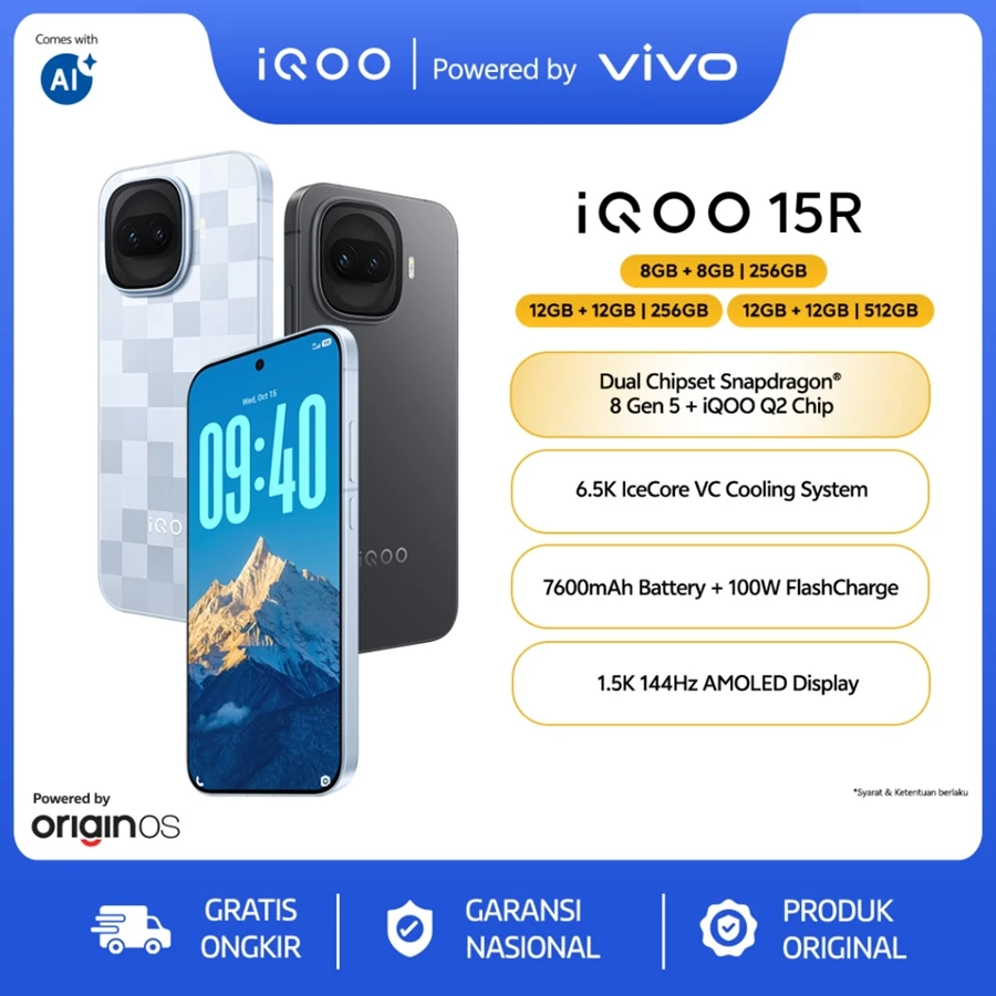 Vivo iQOO 15R: Smartphone gaming dengan Snapdragon 8 Gen 5 yang dibanderol dengan harga kompetitif sekitar Rp7,3 juta.