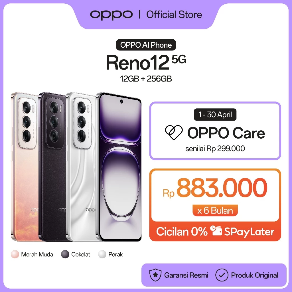 Oppo Reno12 5G: Masih menjadi pilihan populer di kelas menengah dengan desain elegan.