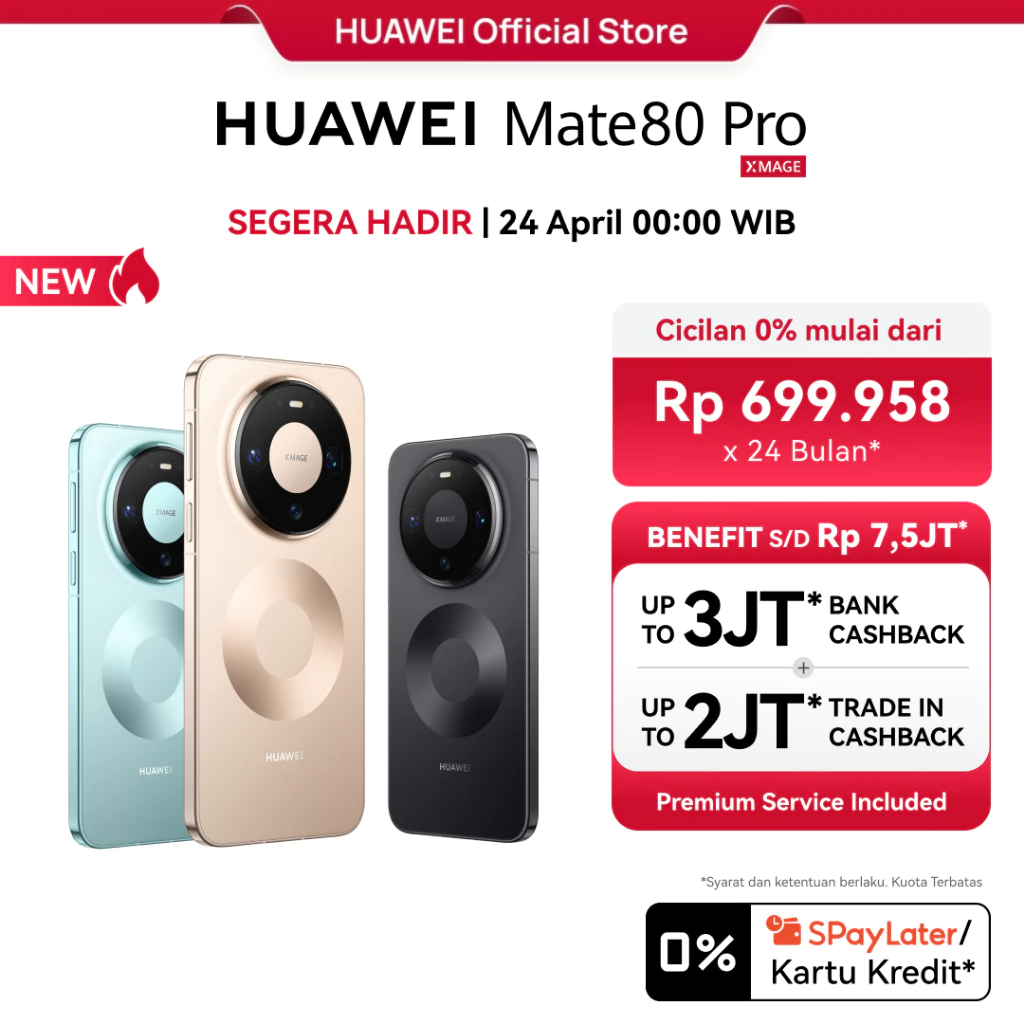 Huawei Mate 80 Pro: Baru saja meluncur resmi pada 16 April 2026 dengan teknologi kamera tercanggih dari Huawei Indonesia.