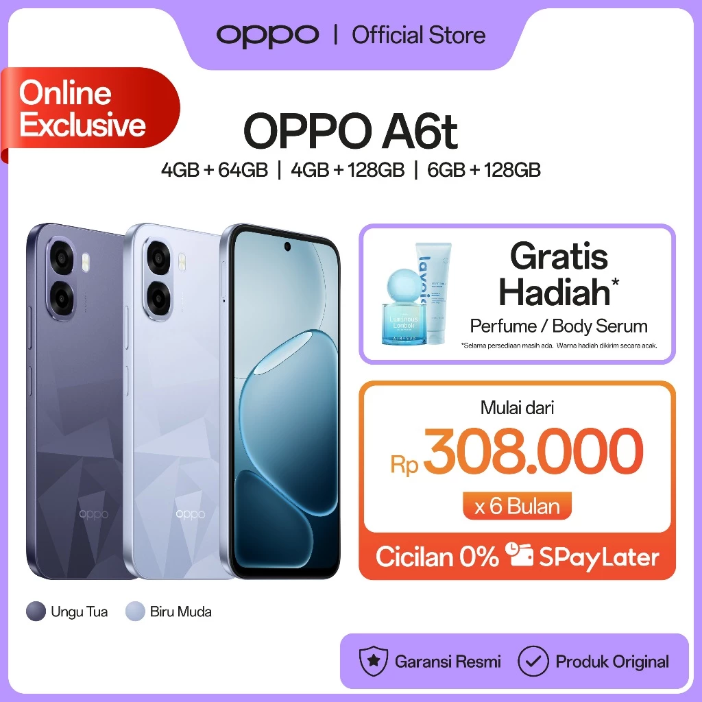 10. OPPO A6t 4+64/128GB & 6+128GB Snapdragon 685, 6500mAh Large Battery, 120Hz Ultra High Refresh Rate Rp1.849.000