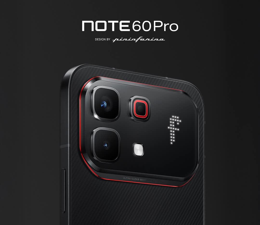 Infinix Note 60 Ultra hadir dengan desain yang dikembangkan bersama rumah desain legendaris mobil sport asal Italia, Pininfarina. Ponsel punya desain modul kamera unik berwarna hitam pekat yang, menyatu dengan punggung ponsel secara horizontal.