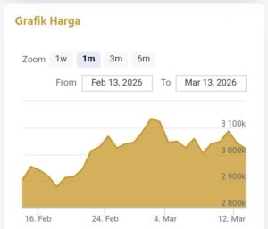 Emas Dunia Antam BSI Gold Galeri 24 Emasku Lotus Archi Grafik Cicil Grafik Harga Emas Hari Ini (Logam Mulia Antam) Hari ini emas naik atau turun? Lihat ...