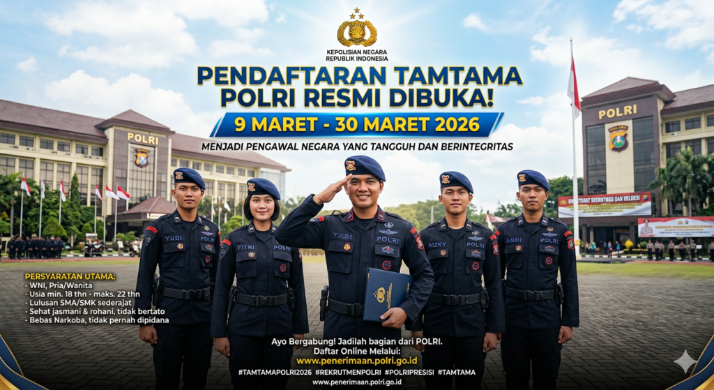 Pendaftaran Tamtama POLRI Resmi Dibuka Tanggal 9-30 Maret 2026