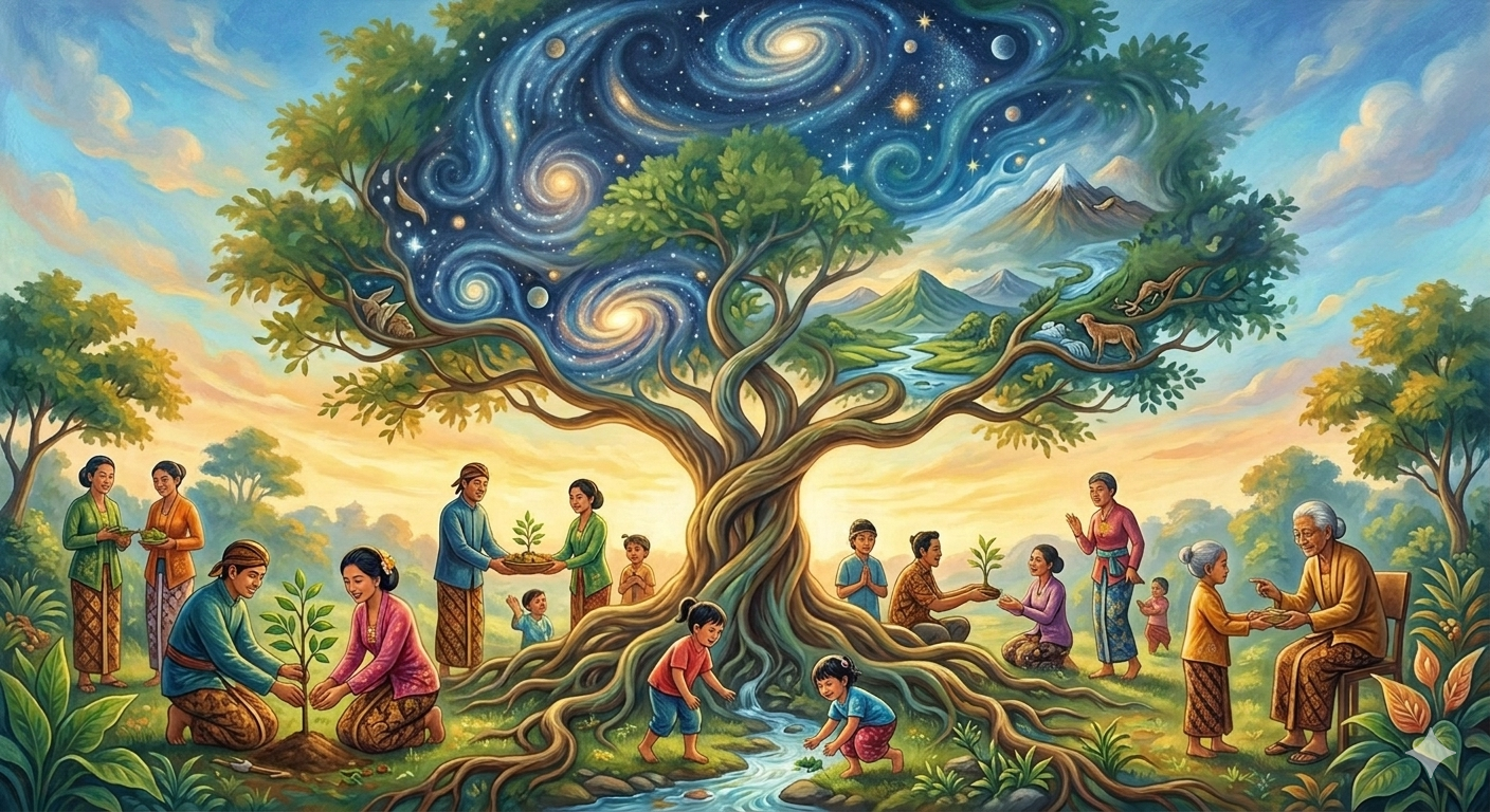 Kuliah Gratis Auto PNS ꦩꦩꦪꦸꦲꦱꦾꦸꦤꦶꦁꦱꦼꦧꦮꦤ (Memayu Hayuning Bawana) : Menjaga Keharmonisan Diri, Sesama, dan Semesta ꦩꦩꦪꦸꦲꦱꦾꦸꦤꦶꦁꦱꦼꦧꦮꦤ (Memayu Hayuning Bawana) adalah salah satu falsafah hidup paling mendalam dalam budaya Jawa. Secara harfiah, istilah ini berasal dari kata memayu (mempercantik), hayu (selamat/rahayu), dan bawana (dunia/alam semesta). Secara filosofis, nilai ini mengajarkan bahwa tugas utama manusia di bumi adalah memperindah dunia yang sudah indah serta menjaga keselamatan alam semesta. Berikut adalah tiga pilar utama dalam implementasi nilai tersebut. 1. Hubungan Manusia dengan Diri Sendiri (Mikul Duwur) Sebelum memperbaiki dunia, seseorang harus mampu menata dirinya sendiri. Ini melibatkan pengendalian hawa nafsu dan pengembangan karakter agar menjadi pribadi yang bijaksana. Dalam konteks ini, “mempercantik dunia” dimulai dari memancarkan kebaikan dari dalam hati. Info Belanja Cicilan Online Murah Motor HP Laptop TV Mesin Cuci Kompor Gas Springbed Dll 2. Hubungan Manusia dengan Sesama (Sosial) Nilai ini menekankan pentingnya harmoni sosial. Menciptakan suasana yang rukun, saling menghormati, dan menghindari konflik adalah bentuk nyata dari menjaga “keindahan” tatanan masyarakat. Prinsip ini sangat relevan untuk menjaga persatuan di tengah perbedaan. 3. Hubungan Manusia dengan Alam (Ekologis) Memayu Hayuning Bawana adalah konsep kearifan lokal tentang pelestarian lingkungan. Manusia dilarang merusak alam demi keserakahan pribadi. Menjaga kelestarian hutan, air, dan udara bukan sekadar kewajiban teknis, melainkan bentuk ibadah dan penghormatan kepada Sang Pencipta yang telah menyediakan sarana kehidupan. Mengapa Relevan Saat Ini? Di era modern yang penuh dengan krisis iklim dan polarisasi sosial, filosofi ini menjadi pengingat bahwa manusia bukanlah penguasa alam yang boleh bertindak sewenang-wenang. Kita adalah penjaga (steward) yang bertanggung jawab memastikan bahwa dunia yang kita tinggalkan untuk generasi mendatang tetap dalam keadaan baik dan harmoni. Memayu Hayuning Bawana bukan sekadar slogan, melainkan pedoman etika universal. Dengan menjaga keseimbangan antara kepentingan pribadi, sosial, dan alam, kita sedang menjalankan tugas suci untuk menjaga keberlangsungan hidup di alam semesta. *** Filosofi Budaya Jawa 10 Nilai-nilai Kemanusiaan dan Etika Sosial dalam Budaya Jawa ꦩꦩꦪꦸꦲꦱꦾꦸꦤꦶꦁꦱꦼꦧꦮꦤ (Memayu Hayuning Bawana) : Menjaga Keharmonisan Diri, Sesama, dan Semesta Pengembangan Diri 10 Nilai-nilai Kemanusiaan dan Etika Sosial dalam Budaya Jawa Stoikisme : Seni Hidup Tenang dan Bahagia Tanpa Drama 7 Nilai Budaya Jepang 日本文化 yang Akan Mengubah Cara Anda Berjuang Menuju Sukses Belajar dari Leluhur: 5 Nilai Utama Budaya Cina untuk Meningkatkan Kualitas Diri dan Karier Taoisme: Panduan Hidup Selaras dengan Alam di Tengah Dunia yang Serba Cepat Lebih dari Sekadar Tangguh: 5 Pelajaran Hidup dari Rusia untuk Pengembangan Diri Beyond Bollywood: Mengupas Akar Kesuksesan Global Melalui Nilai-Nilai India Navigasi pos 10 Nilai-nilai Kemanusiaan dan Etika Sosial dalam Budaya Jawa