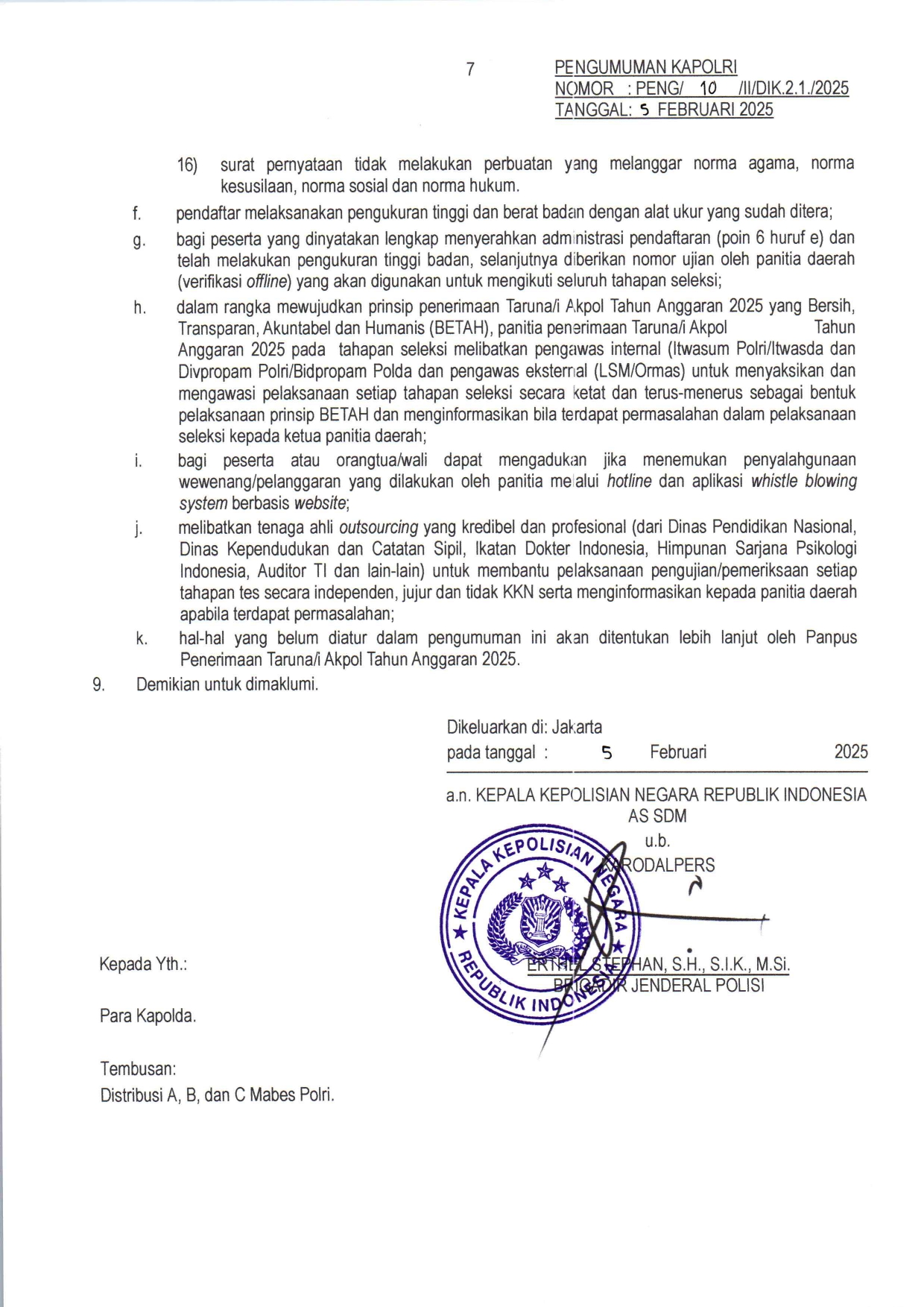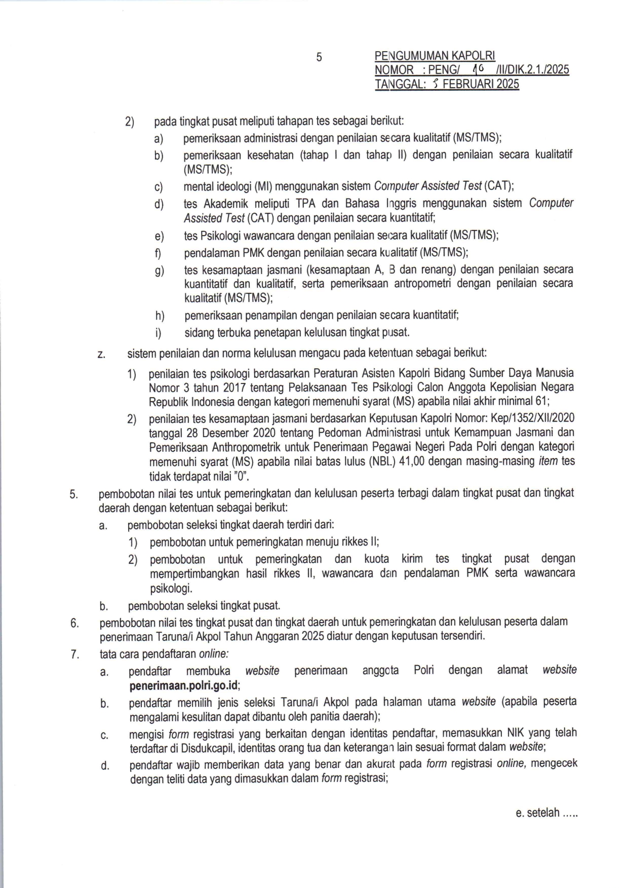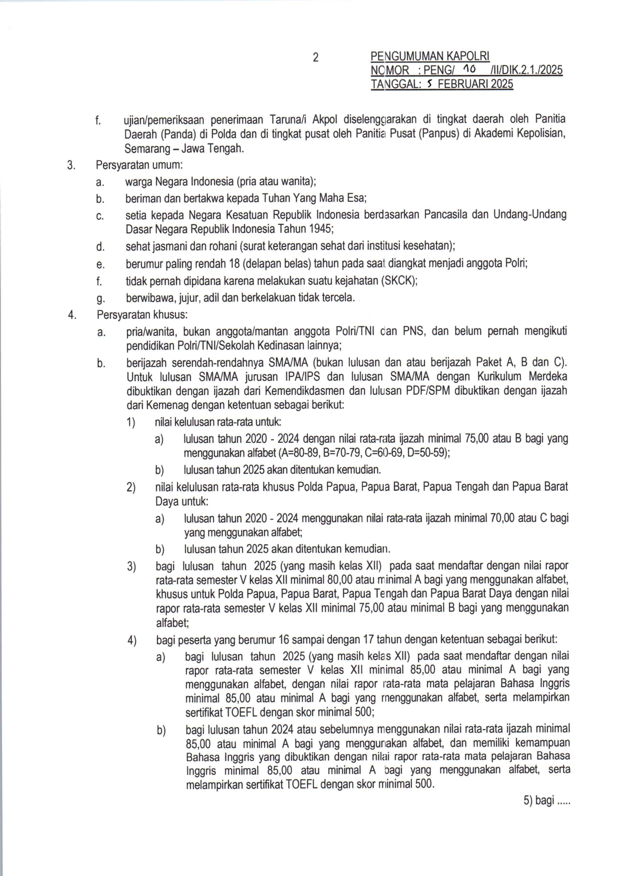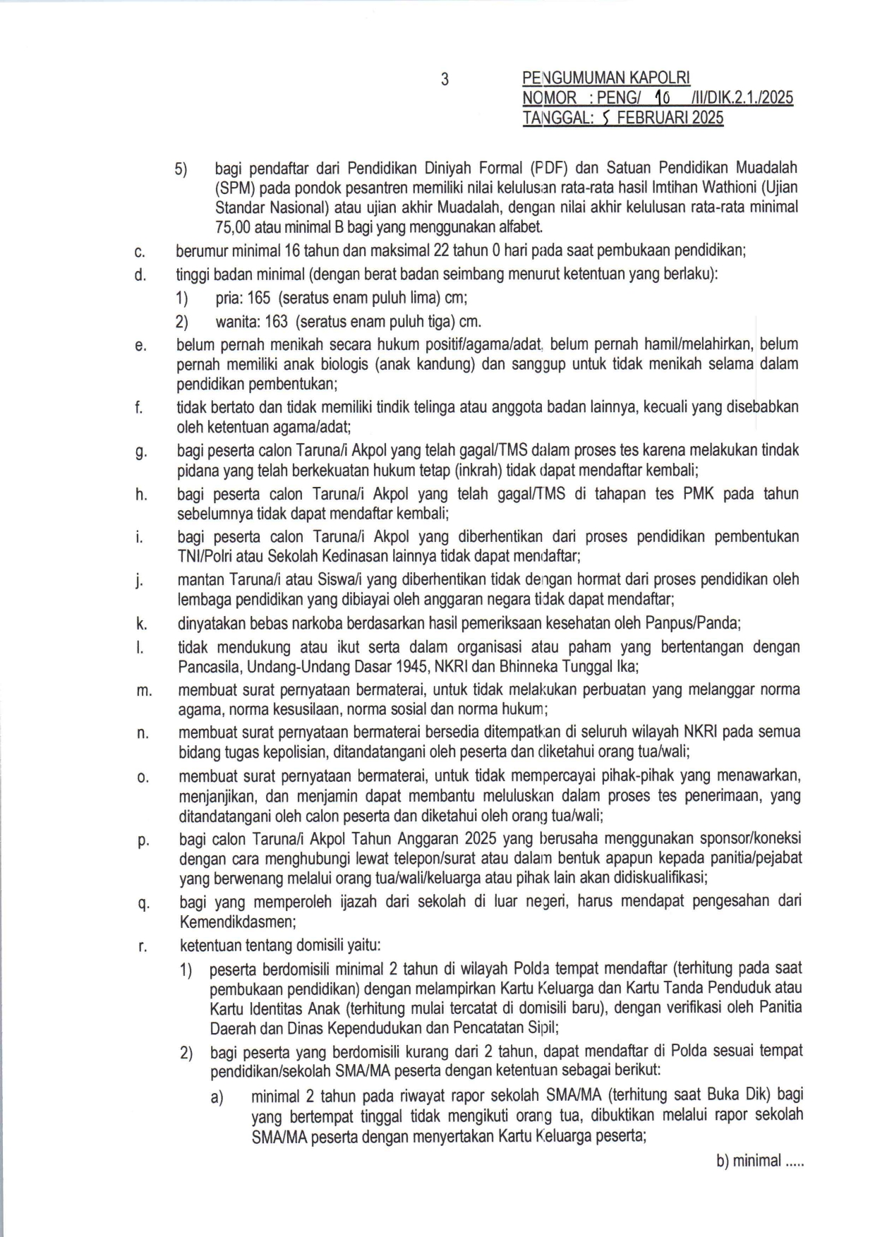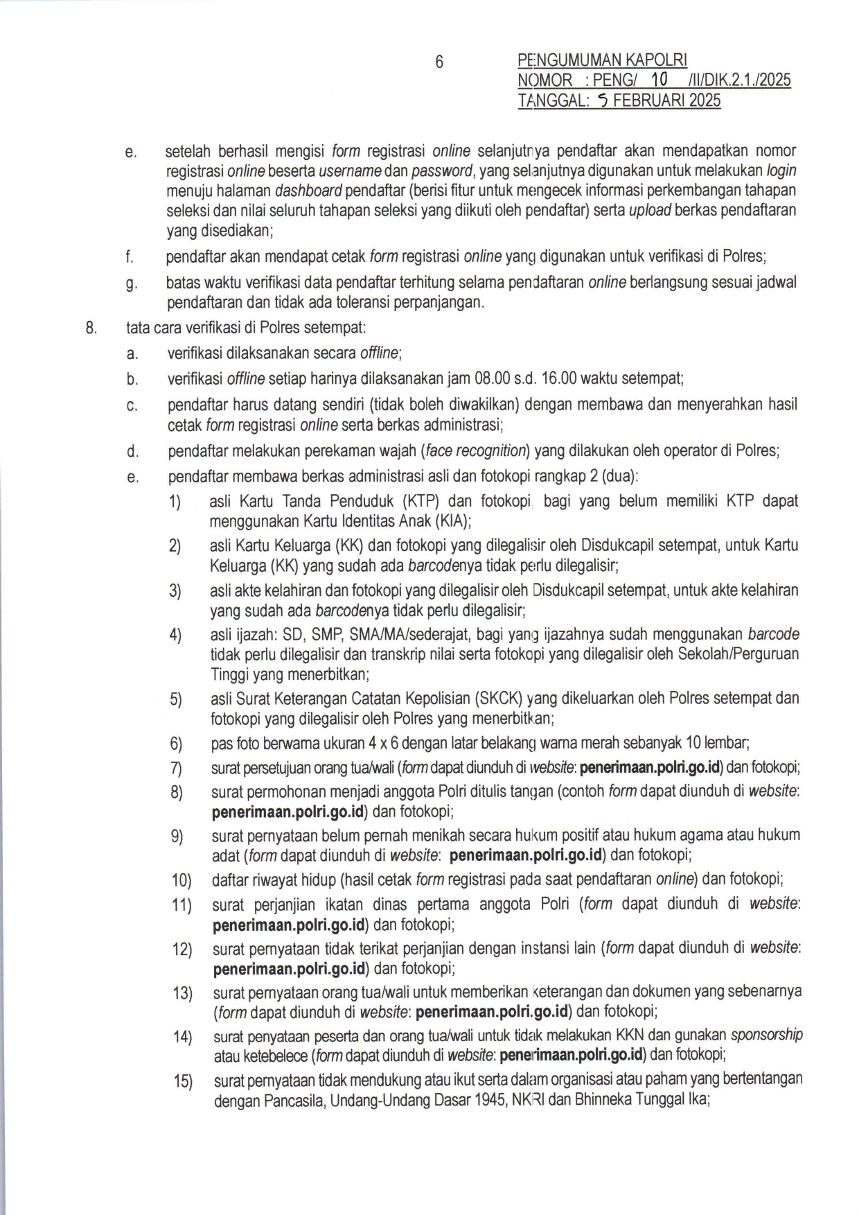 Syarat Lengkap Pendaftaran AKPOL Akademi Kepolosian Akademi Kepolisian (AKPOL) adalah lembaga pendidikan kedinasan di bawah naungan Lemdiklat Polri yang berfokus pada pembentukan perwira pertama Polri. Terletak di Semarang, Jawa Tengah, Akpol merupakan jalur prestisius bagi lulusan SMA/MA yang ingin berkarier sebagai perwira polisi dengan pangkat Inspektur Polisi Dua (Ipda) setelah lulus. Taruna dan Taruni AKPOL menempuh pendidikan selama 4 tahun dengan beban studi setara Sarjana Terapan (D4) Kepolisian. Selama masa pendidikan, seluruh biaya hidup dan fasilitas ditanggung sepenuhnya oleh negara. Kurikulum Akpol menggabungkan pengajaran akademik, pelatihan lapangan, pembentukan karakter, serta kesamaptaan jasmani yang ketat untuk mencetak pemimpin yang profesional dan berintegritas. Pendaftaran AKPOL tahun 2026 belum ada pengumuman dari POLRI. Lantas apa saja syarat pendaftaran yang harus dipersiapkan untuk daftar AKPOL? Berikut ini syarat lengkap pendaftaran AKPOL pada tahun lalu, tahun 2025 sebagai bahan persiapan untuk mengikuti tes AKPOL tahun ini. BELI DI SHOPEE | BELI DI TIKTOK Info Buku Buku Tes Terbaru 2026 : Tes CPNS, TNI POLRI, BUMN, Sekolah Kedinasan, UTBK SNBT Download Syarat Daftar Akpol Yuk bagikan infonya di sosmed sahabat… Terima kasih Navigasi pos Beasiswa Patriot 2026 Kuliah Gratis di UI IPB ITB UNPAD UNDIP UGM ITS untuk 1.100 Mahasiswa Syarat Lengkap Daftar Sekolah Tinggi Intelijen Negara (STIN)