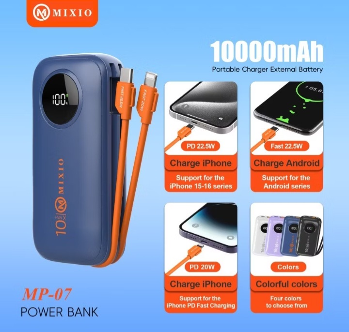 MIXIO MP-10 20000mAh Powerbank 22.5W With Kabel Fast Charging Lightning & Type C For Iphone/Android