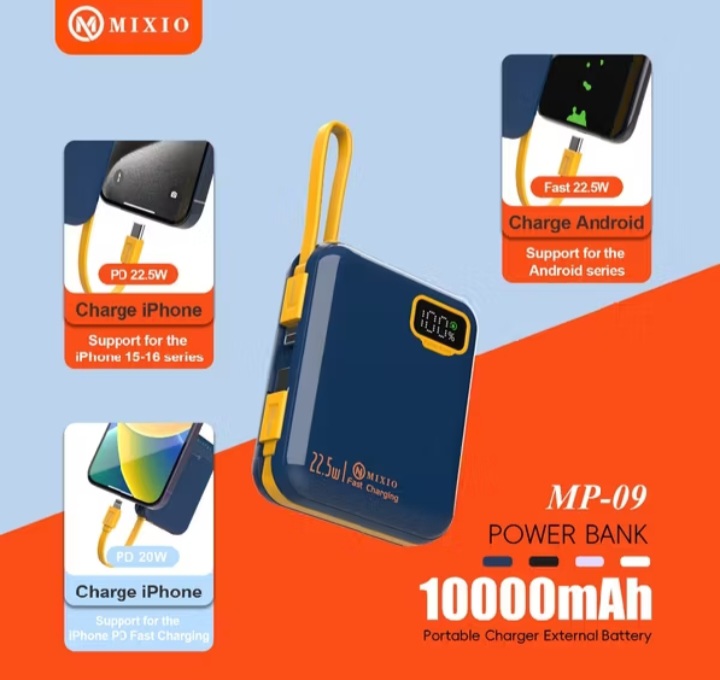 MIXIO MP-09 10000mAh Powerbank Mini 20W With Kabel Fast Charging Lightning & Type C For Iphone/Android