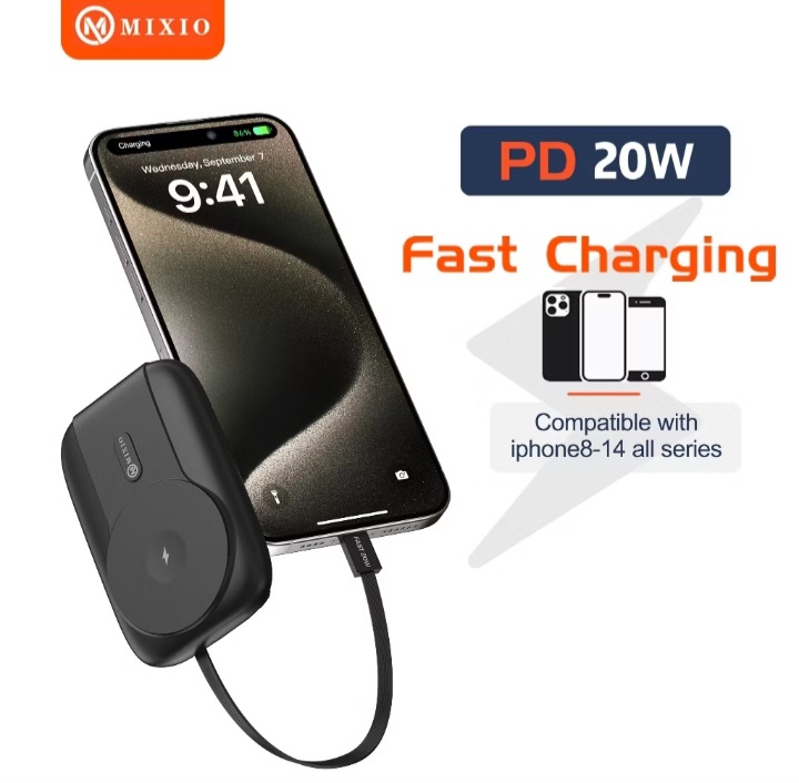 MIXIO MP-12 WIRELESS POWER BANK 10000MAH MAGNETIC MAGSAFE 20W FAST CHARGING TYPE C PD BUILD IN KABEL