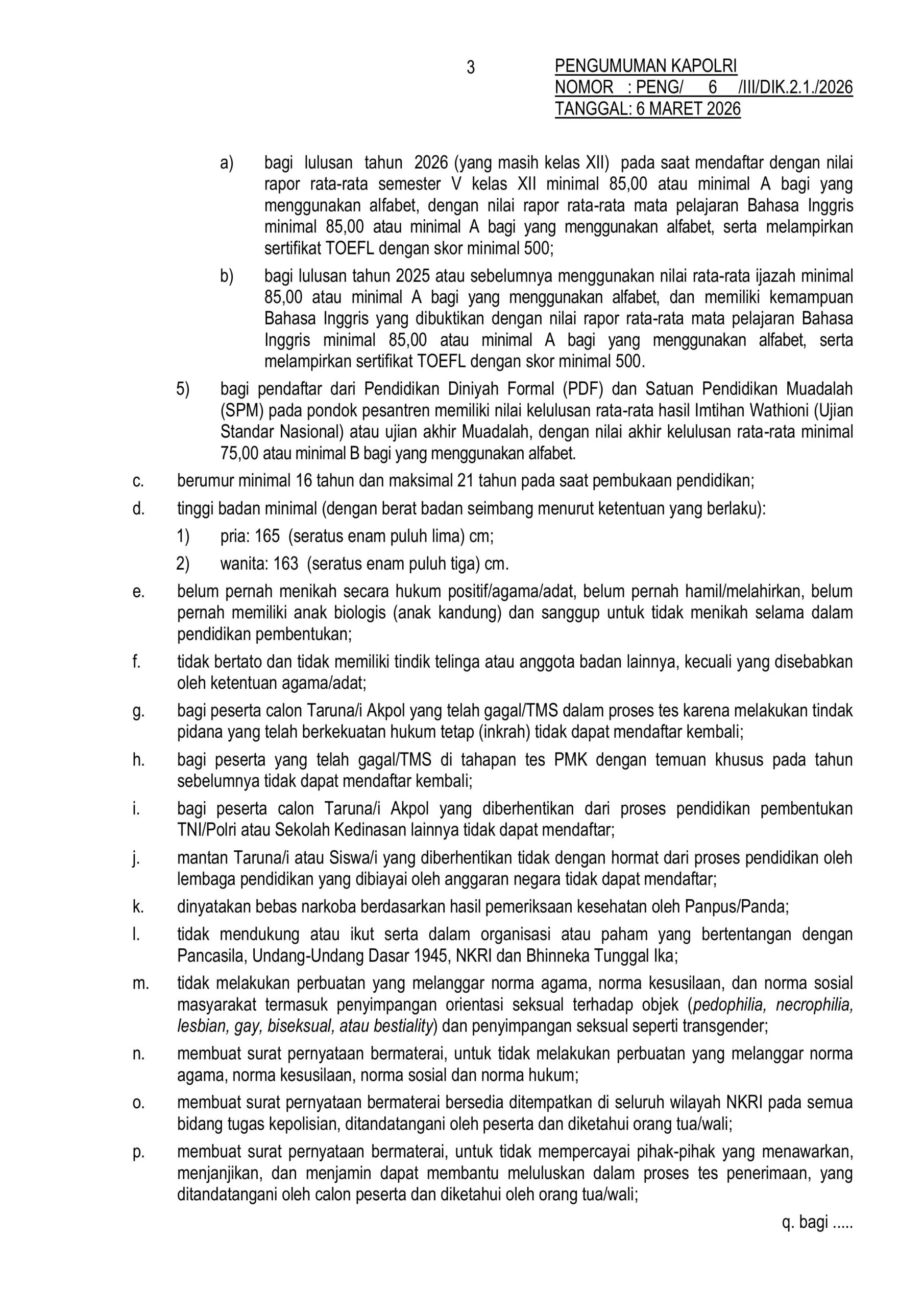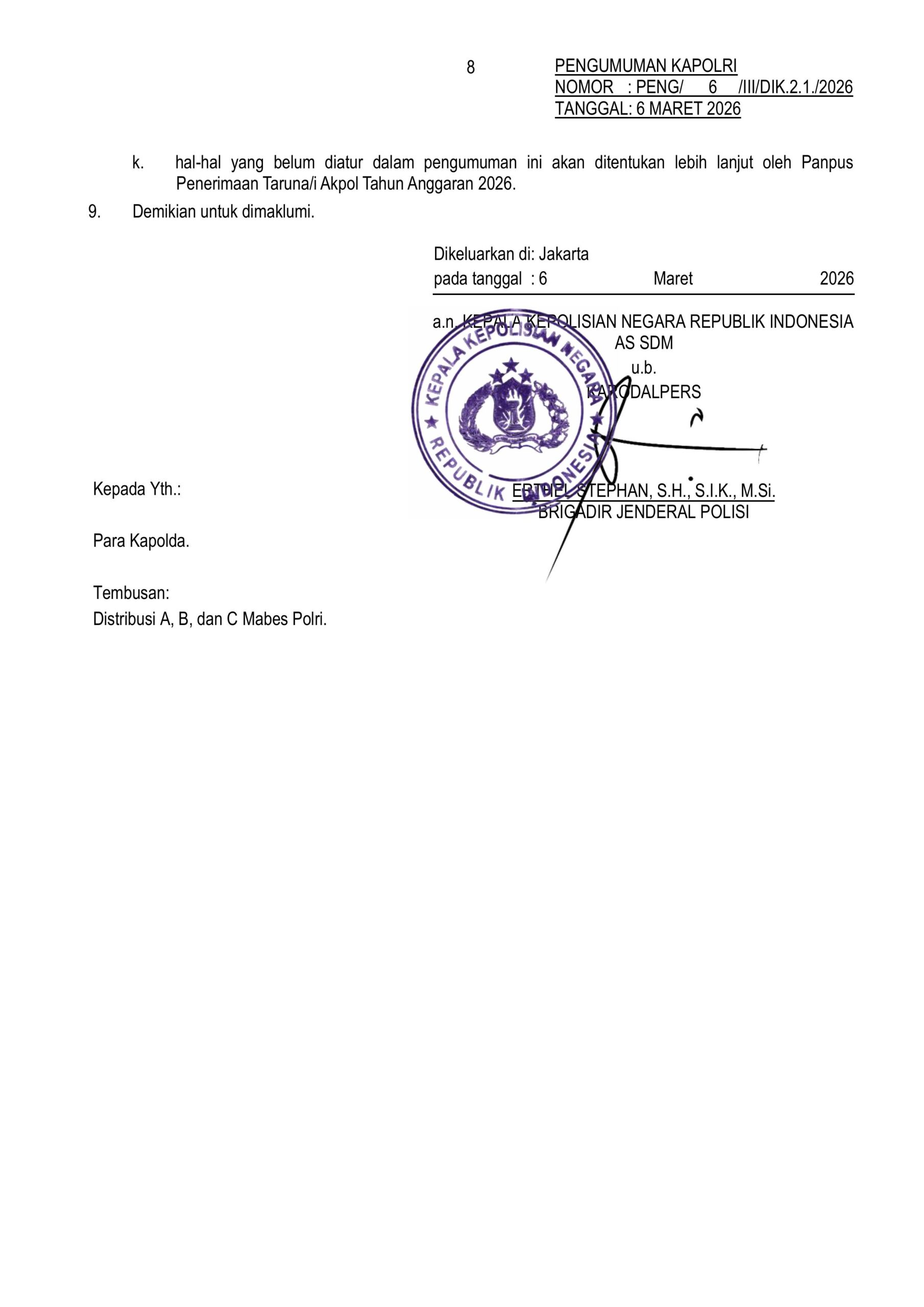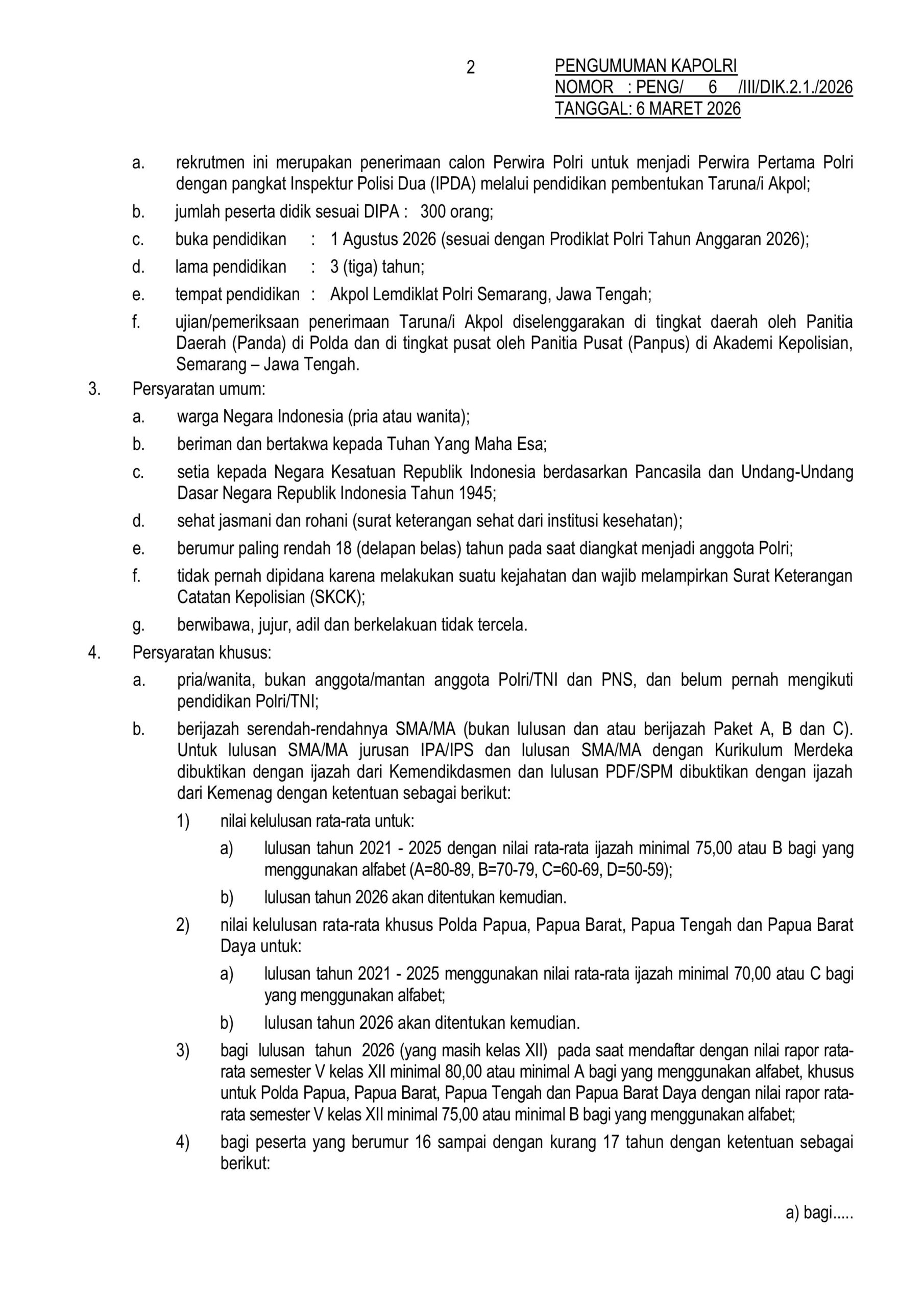 BELI BUKU TES POLRI 2026 Pendaftaran AKPOL POLRI Resmi Dibuka Tanggal 9-30 Maret 2026 Kepolisian Negara Republik Indonesia (POLRI) resmi membuka pendaftaran AKPOL, Bintara dan Tamtama tahun 2026 pada tanggal 9-30 Maret 2026. Informasi ini dirilis dalam website resmi penerimaan POLRI penerimaan.polri.go.id Info Belanja Terlaris 1 di Shopee! Ini Dia Daftar Produknya DOWNLOAD Navigasi pos Buku Tes TNI POLRI 2026 Pendaftaran Bintara POLRI Resmi Dibuka Tanggal 9-30 Maret 2026