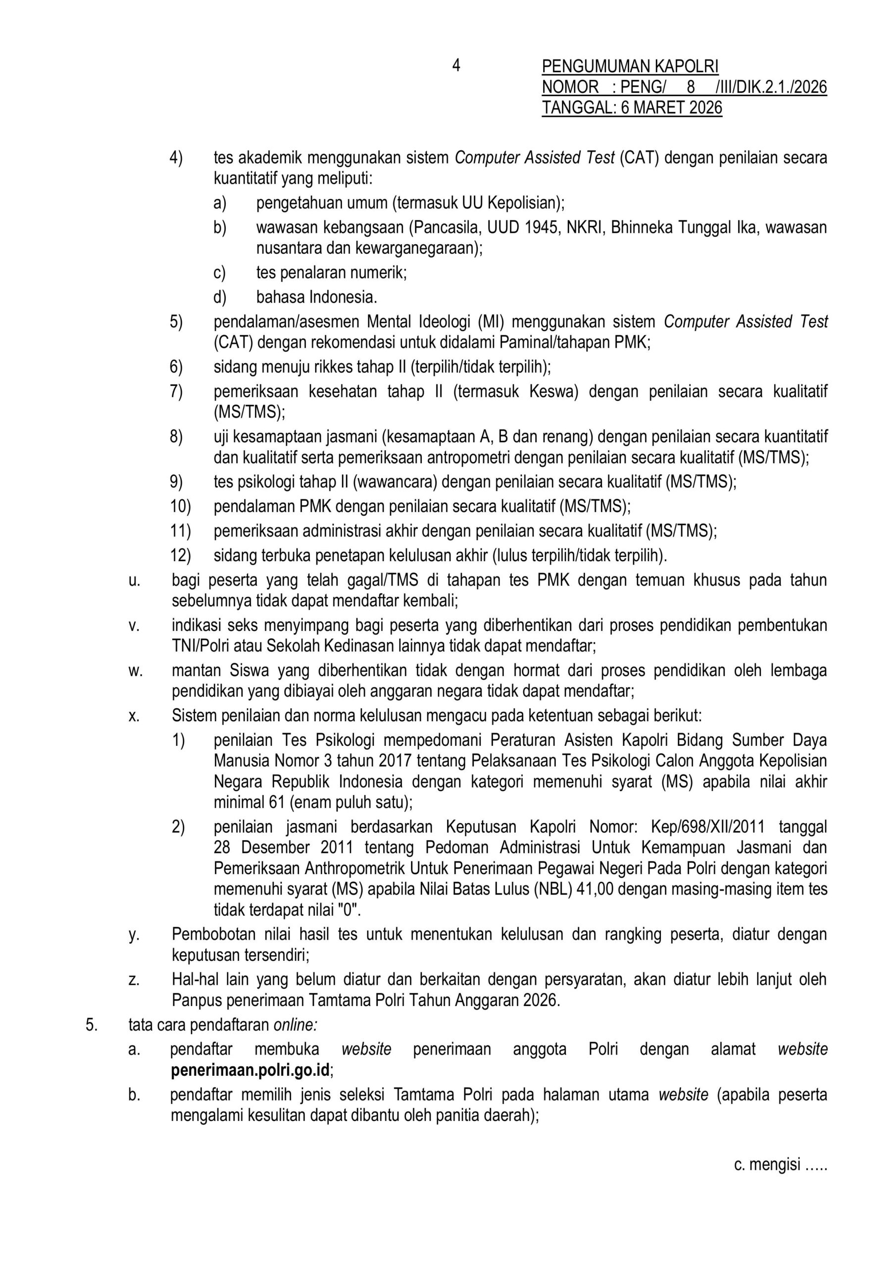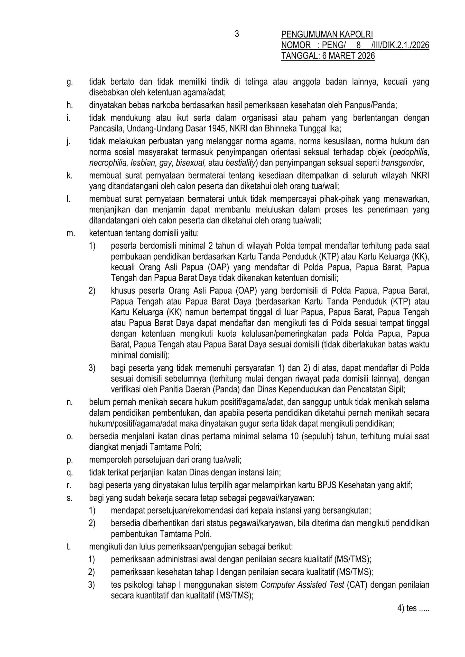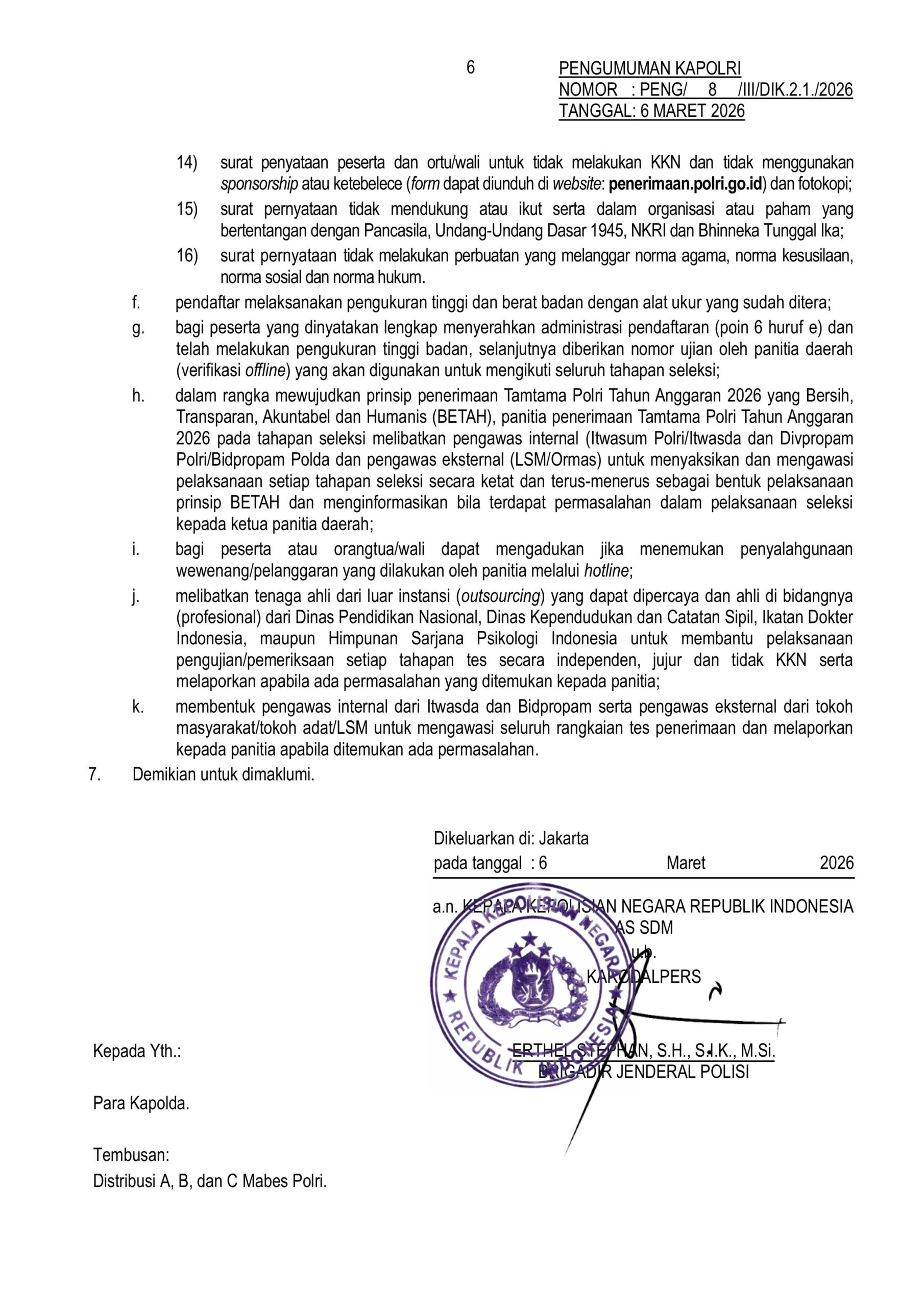 BELI BUKU TES POLRI 2026 Pendaftaran Tamtama POLRI Resmi Dibuka Tanggal 9-30 Maret 2026 Kepolisian Negara Republik Indonesia (POLRI) resmi membuka pendaftaran AKPOL, Bintara dan Tamtama tahun 2026 pada tanggal 9-30 Maret 2026. Informasi ini dirilis dalam website resmi penerimaan POLRI penerimaan.polri.go.id Info Belanja Terlaris 1 di Shopee! Ini Dia Daftar Produknya DOWNLOAD Navigasi pos Pendaftaran Bintara POLRI Resmi Dibuka Tanggal 9-30 Maret 2026 Program Magang ke Jepang 2026 Dibuka, Ini Syarat, Jadwal, dan Benefitnya