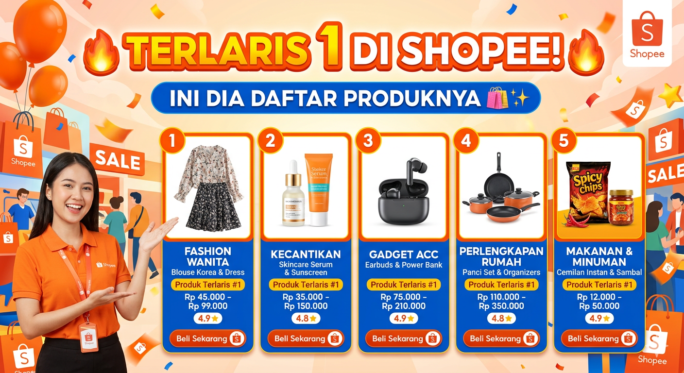 Berikut adalah daftar produk terlaris di Shopee bulan ini berdasarkan kategori utama yang mendominasi pasar saat ini.
