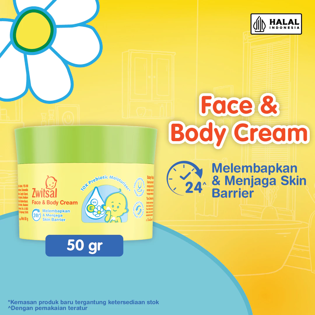 2. ZWITSAL Baby Face and Body Cream – 10X Prebiotic Moisturizer, Chamomile, Vit E 50 gr Rp19.000